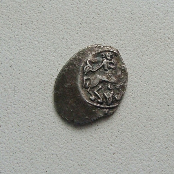 3. 0,5 гр ,15 Х 13,5 мм. Удельная чешуя Денга. Можайское княжество. Князь Иван Андреевич, 1446-1454. Борцы. R8