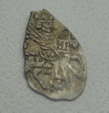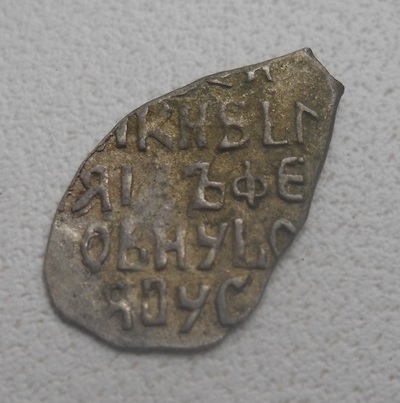 2.0,6 гр ,15 Х 1,3 мм Удельная чешуя Денга. Можайское княжество. Князь Иван Андреевич, 1446-1454. Зверек. R4.