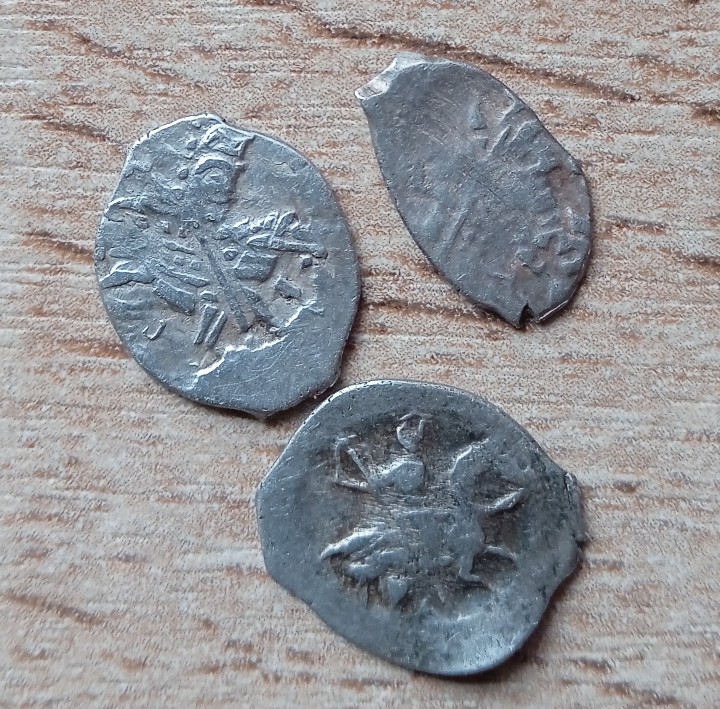 Такая нашлась в прошлом сезоне монетка. Лжедмитрий видится. Найдена в Псковской области. Монета не мелкая. Интересен момент как бы зеркального отображения вниз копыт коня и повторение начала легенды в самом низу? Это двойной удар, или что-то ещё? Постарался всё отобразить на фото. Непонятные( для меня) моменты выделил красными овалами. Подскажите по интересу в таком состоянии и сохране(если будет) и по цене. С Ув. ![]() ![]() -------------------- Мой старый акаунт - Макар Псков, рег. № 20.999