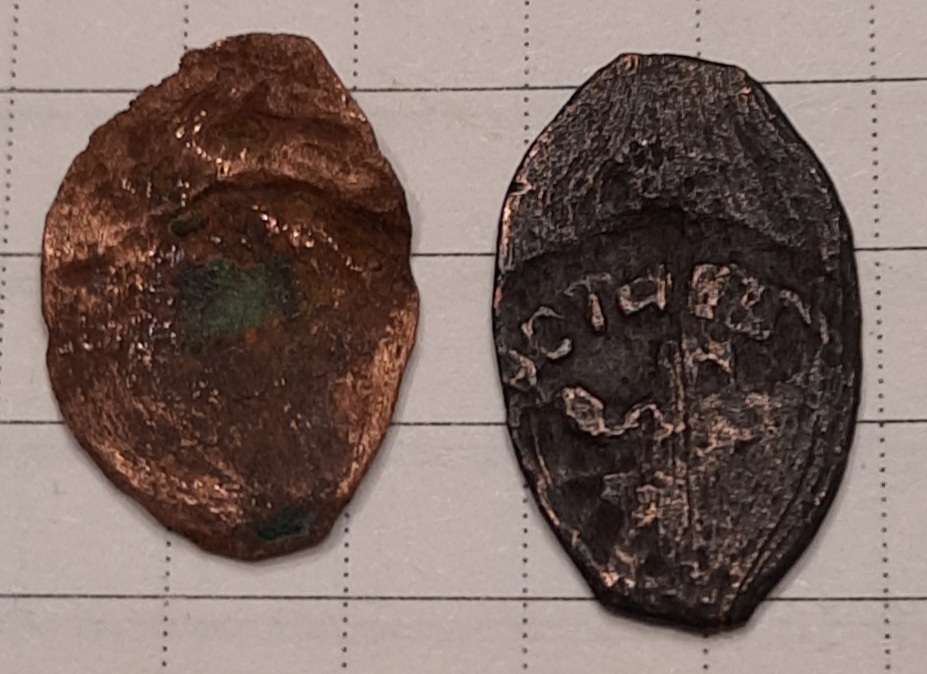 повторно Монета медная 100 %. подскажите по медной монетке... чья, какого времени и примерную стоимость если она востребована... ..монета крепкая Владимирская, 0,68 г Монета медная 100 %. Найдено две рядом, одного формата. Вторая после лимонной кислоты на фото. Сопутка ВВ. Новые фотки: Спасибо за любую инф. Сообщение отредактировано VMF: Mar 31 2023, 23:15 Вложенные эскизы изображений |
