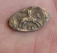 QUOTE(Vnuk Svaroga @ Apr 3 2023, 22:01) Здравствуйте.Пожалуйста,подскажите по данной находке.Спасибо.Взвесить,к сожалению,пока не могу,извиняюсь. Обрезанная Новгородская денга Ивана 3 с буквой Ю. |