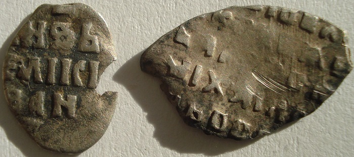 QUOTE(MishanK @ Apr 3 2023, 22:39) Всех приветствую. Помогите определить и оценить чешуйки. 1- 0,27гр, 2- 0,40 гр, Владимирская обл. Слева-денга Грозного Справа копейка Михаила Фёдоровича Оценивать тут нечего -------------------- Чтобы найти иголку- нужно сначала найти стог!