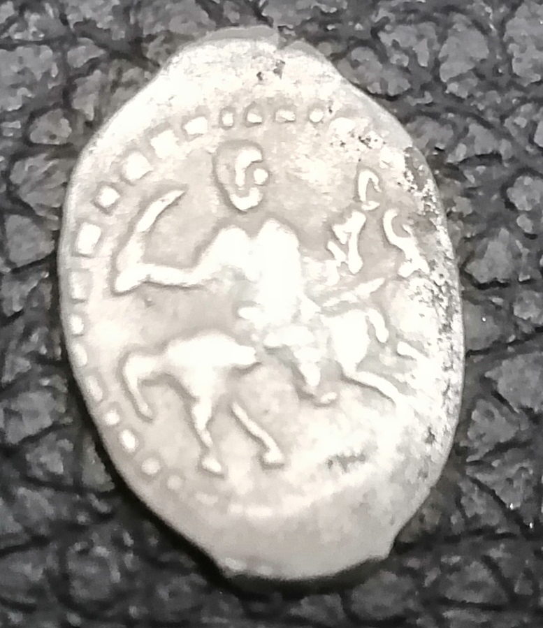 QUOTE(puzzle @ Apr 20 2023, 16:31) Доброго дня! Помогите пожалуйста с определением! Форма ее какая-то необычная, такая и должна быть или отколота? Спасибо Новгородская денга Ивана 3 или Василия 3, буквы под конем не осталось после обрезки |