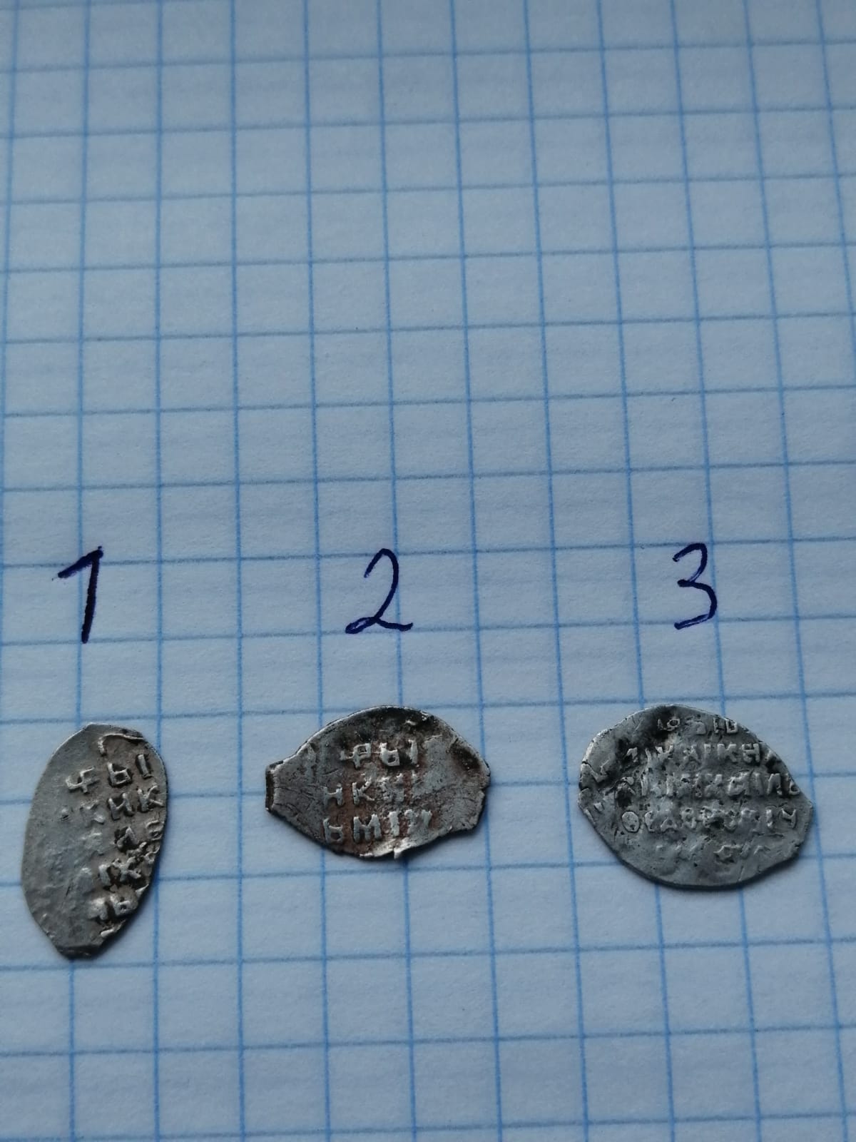 Здравствуйте! Помогите, пожалуйста, определить и оценить монеты. Вес: 0,64 г. ГП2 №1576А ? ![]() ![]() Вес: 0,73 г. ГП2 №3181 ? Другое подражание? ![]() ![]() -------------------- Things must change…