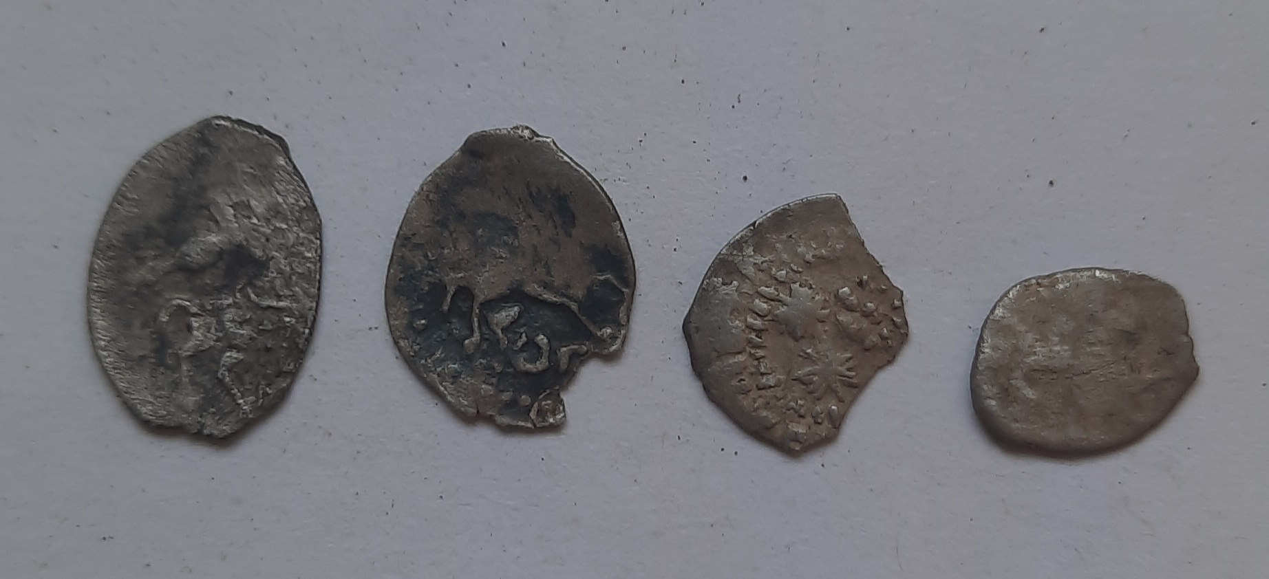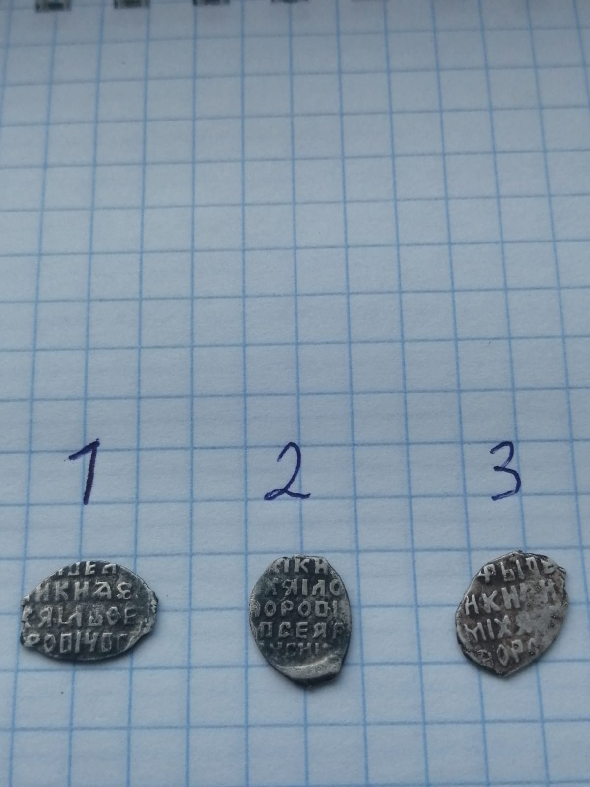 QUOTE(Diggory @ Jul 3 2023, 09:57) Здравствуйте! Помогите, пожалуйста, определить и оценить монеты. Вес: 0,64 г. ГП2 №1576А ? Вес: 0,73 г. ГП2 №3181 ? Другое подражание? 1. Неописанное сочетание сторон: прямой меч по типу ГП 1576 А, и легенда с ошибкой в имени князя по типу 1576 Е-F. 3-5 т.р. 2. Та же самая фигня: всадник типа ГП 3181 А, оборотка типа 3181 С. Тоже 3-5 т.р. Сохран увы. |