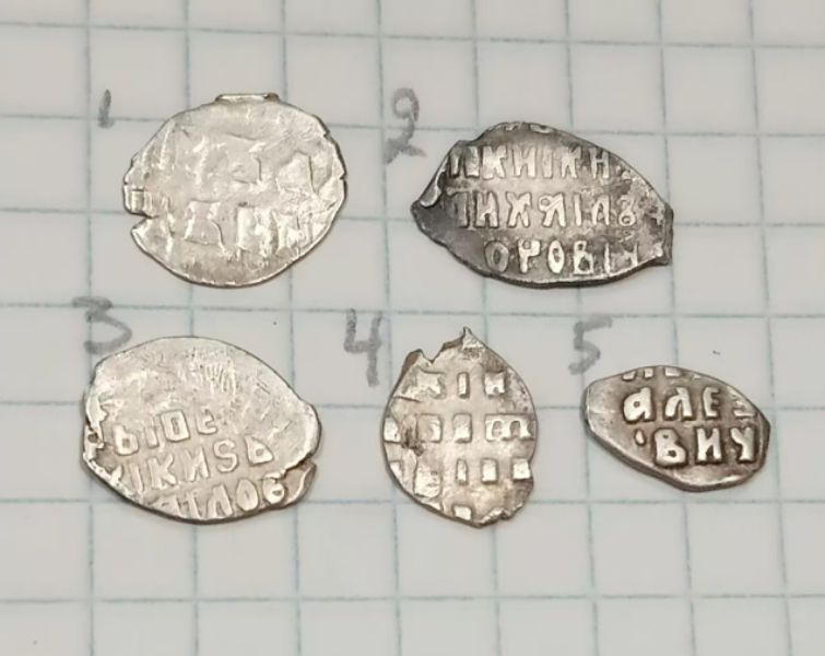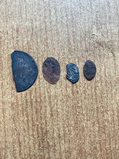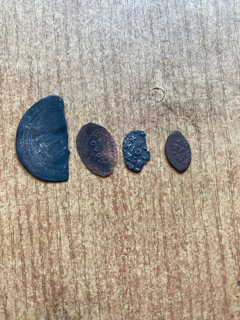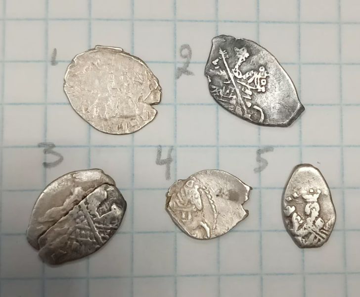 QUOTE(fisherman. @ Aug 25 2023, 12:37) Добрый день! Уважаемые специалисты, я опять к вам за помощью. Помогите определить и оценить чешуйки. Я так понимаю, это денги Ивана Грозного и вроде одна получшка? Может есть что-то из этого поинтереснее остального или выставлять, как и всё остальное - кучками со 100 рублей? Заранее всем спасибо! ![]() ![]() Деньги Грозного (все простые) , полушка КГ 140 и деньга Ивана Алексеевича КГ 1589 (второе фото, 2й ряд, 2я монета; пореже прочего, но состояние так себе, вряд ли имеет смысл отдельно выставлять). |