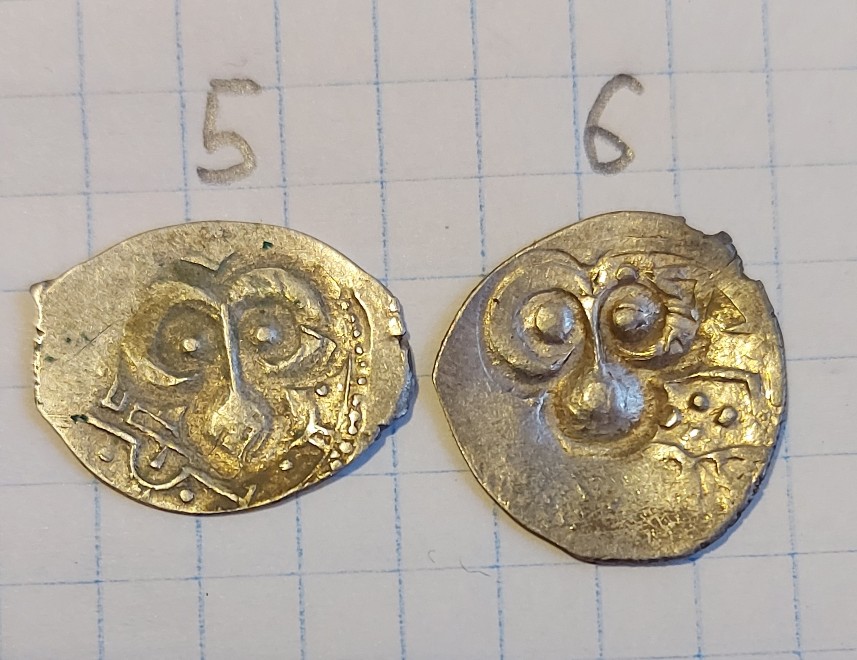 QUOTE(Denis_Ef @ Oct 28 2023, 17:09) Добрый день, подскажите пожалуйста по чешуйкам. за ранее спасибо. 1 - редкая московская копейка Василия Шуйского, КГ 254, она же ГКХ1 275, она же ГКХ2 296. 2 - Борис, Псков, КГ 193, 3 - Борис, Москва, КГ 173, 4,5 - денежки Грозного, тверская КГ 71 и московская КГ 43. |