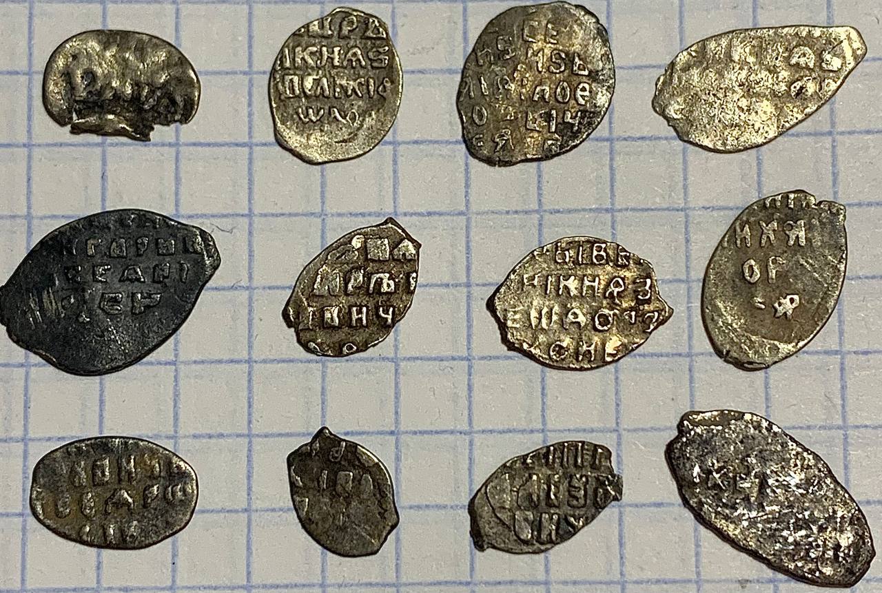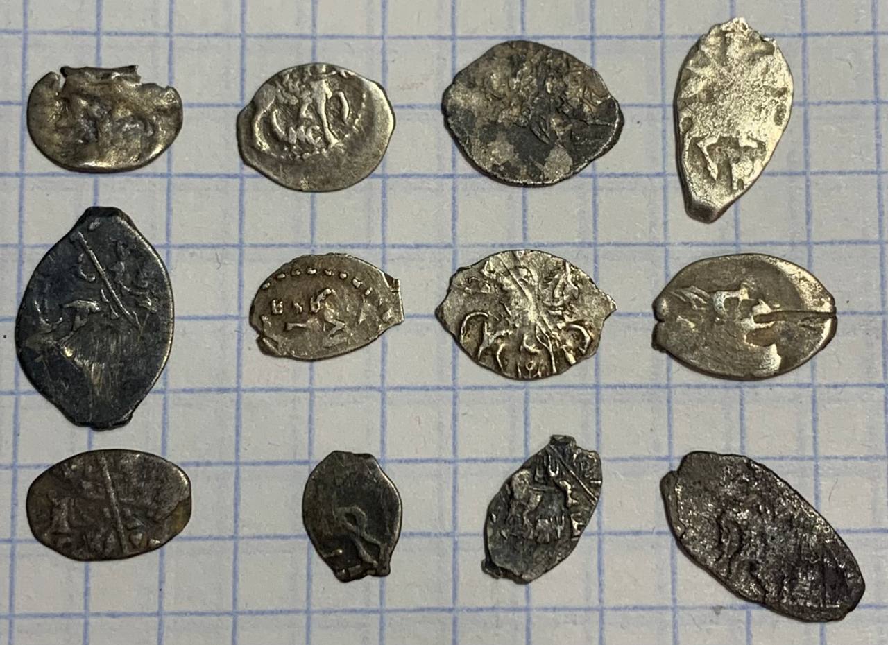 QUOTE(Северко @ Nov 27 2023, 17:46) Здравствуйте. Пожалуйста, определите происхождение монет. Спасибо! 1 - неопрделяемый лом ; 2 - деньга Федора Ивановича ; 3,4,8,12 - московские копейки Михаила Федоровича ; 5 - новгородская копейка Грозного ; 6,10 - Петр, единоличное правление, копейки Старого двора, 1701 и 1702 гг ; 11 - он же, копейка Кадашевского двора 1705 г. ; 9 - совместное правление Ивана и Петра Алексеевичей, копейка с именем Ивана ; 7 - копейка Федора Алексеевича ; Все простое, №7 поинтереснее прочего, но тоже не раритет. |