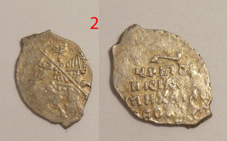 Подскажите пожалуйста по чешуйкам. Пытался определить по Гришину-Храменкову, но что то не получается. 1. Годунов. Предполагаю что Москва ГХ - 84. Так ли это? 1. Шуйский. Предполагаю что Москва ГХ-129 конь с искривленной задней ногой, но в верхней строке "ЦРЬ И ВЕ" буква И не соответствует ГХ-129, а ГХ-130. 2. Шуйский. Тут все наоборот конь ГХ-130, а текст ГХ-129. Буду благодарен за помощь в определении. Вложенные эскизы изображений |