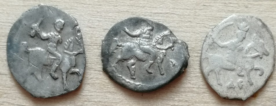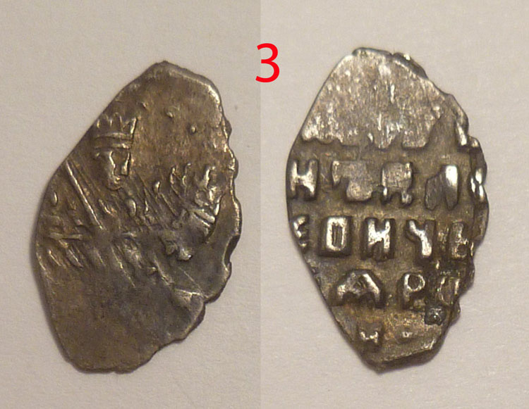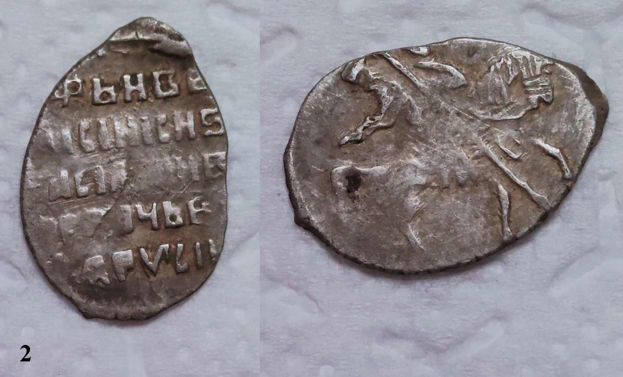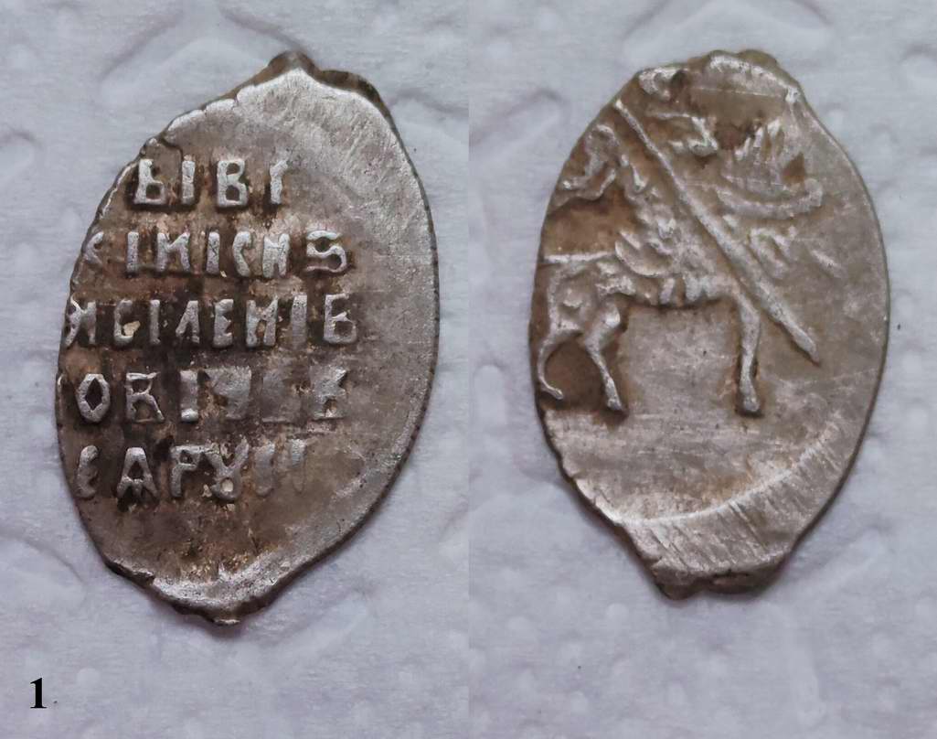 QUOTE(Валерий_М @ Dec 3 2023, 22:00) Доброго дня! Подскажите пожалуйста по чешуйкам. Пытался определить по Гришину-Храменкову, но что то не получается. 1. Годунов. Предполагаю что Москва ГХ - 84. Так ли это? 1. Шуйский. Предполагаю что Москва ГХ-129 конь с искривленной задней ногой, но в верхней строке "ЦРЬ И ВЕ" буква И не соответствует ГХ-129, а ГХ-130. 2. Шуйский. Тут все наоборот конь ГХ-130, а текст ГХ-129. Буду благодарен за помощь в определении. 1 - 164 2 - 252 3 - 249 к.м.к. |