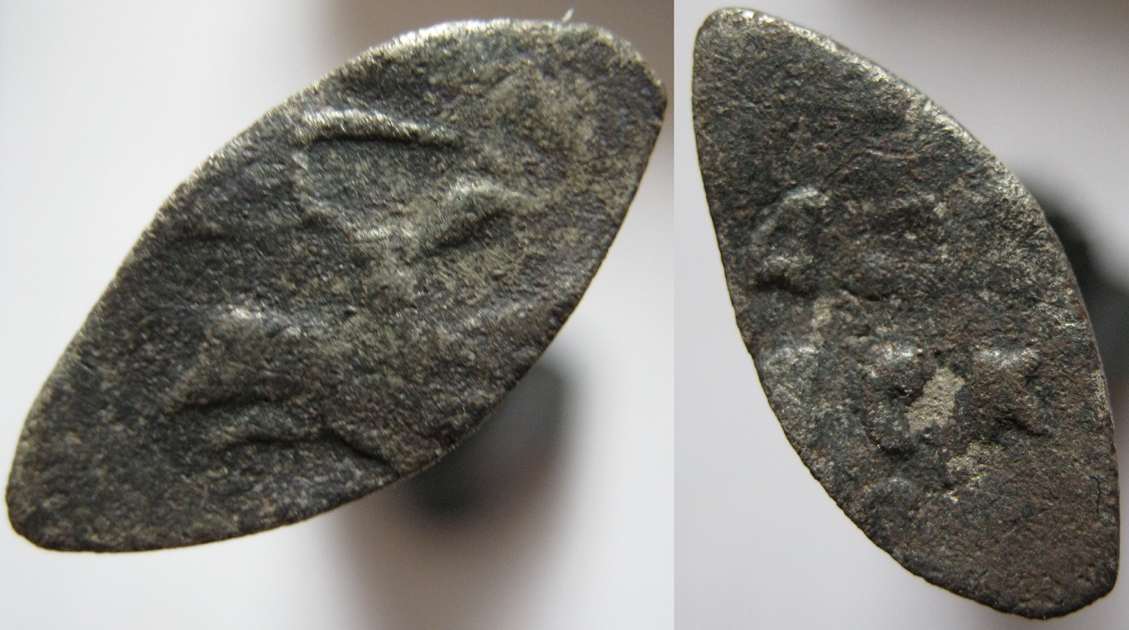 QUOTE(Rascaz @ Apr 14 2024, 14:03) Здравствуйте! Будьте добры подсказать по монете. Вес 0.71 из сопутки еще одна монета весом 0.95 согнутая в двое, с отверстием как от ножа по середине, вообще лысая. Запад М.О. Буду крайне удивлён если специалисты помогут по этим останкам определить монету к сожалению практически ничего не сохранилось. |