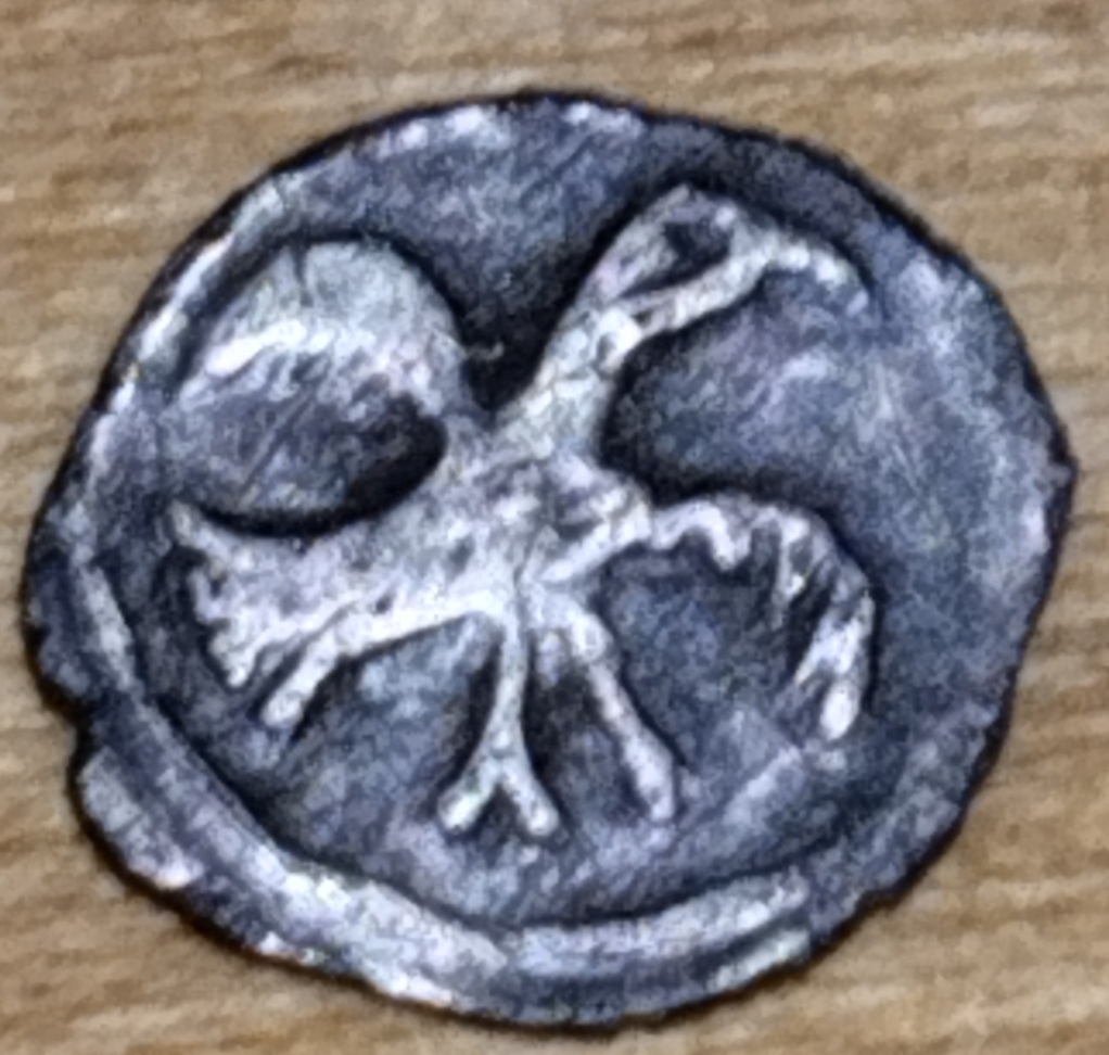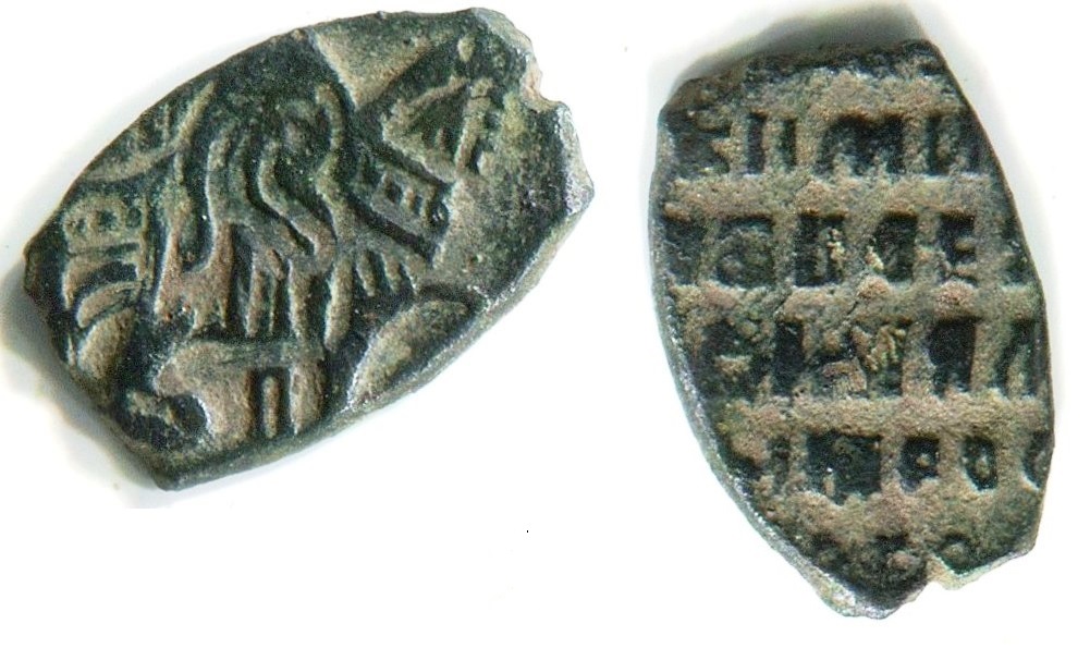 QUOTE(alshi @ May 13 2024, 22:24) Доброго времени суток. Подскажите пожалуйста, можно ли определить по данному обломку что-нибудь? Денга Василия Темного с всадником с копьем и подражанием арабской надписи. № 1975 по ГП-2. |