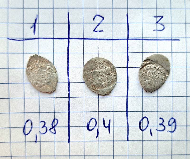 QUOTE(Trubadur @ Jul 25 2024, 20:03) Здравствуйте, помогите пожалуйста определить и оценить. Заранее благодарен. Здравствуйте! 1 - Иван 3, Денга "Московское Акче". До 1000р где-то 2 и 3 - Василий Васильевич "Тёмный", Денга (Всадник с копьём / Голова вправо). Думаю в районе +-2000-2500 |