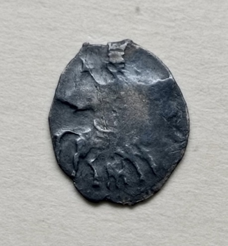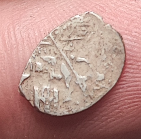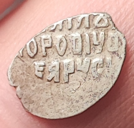 Доброго дня. Помогите, пожалуйста, с определением чешуи Шуйского. Вроде Новгородская копейка. Судя по реверсу, очень похоже на КГ 271 и 274. Но по аверсу что-то непонятное: год РГI=1605, копьё под передними ногами коня и подходит к букве I даты, нога всадника между РГ даты, как у КГ247 Лжедмитрия I. Прошу прощения за фото, лучше не получается, даже микроскопом.
