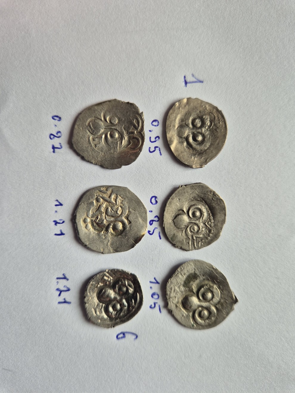 Правильно определил деньгу или нет? В каталогах такой нет,есть похожая но аверс отличается от этой круговой надписью и на реверсе тоже есть отличия,вес тоже намного больше в той которую внесли в новый каталог. Ориентируюсь записями с нового каталога что эта ранняя чеканка Василия Дмитриевича,чеканенная в Московском княжестве как Анонимная грубого чекана со сниженным весом 0.56 гр.монета не тонкая,не соляная, с хорошо читаемой круговой надписью,Печать Князя Великого. Вложенные эскизы изображений |