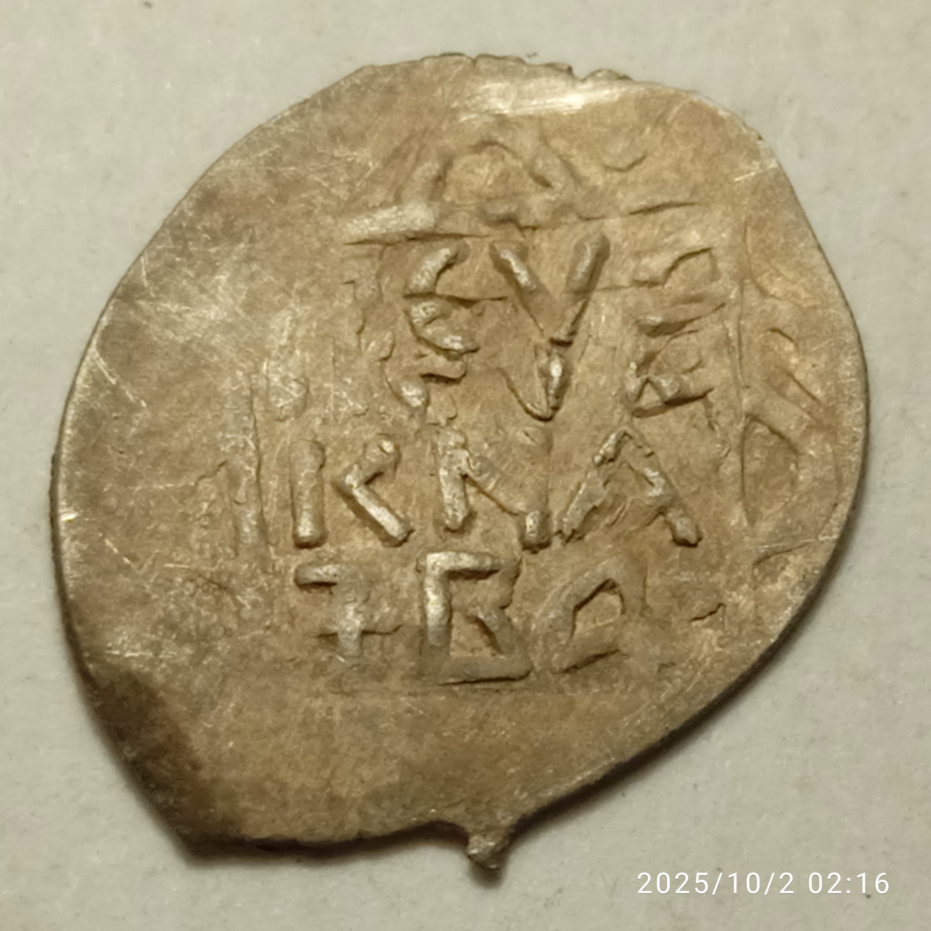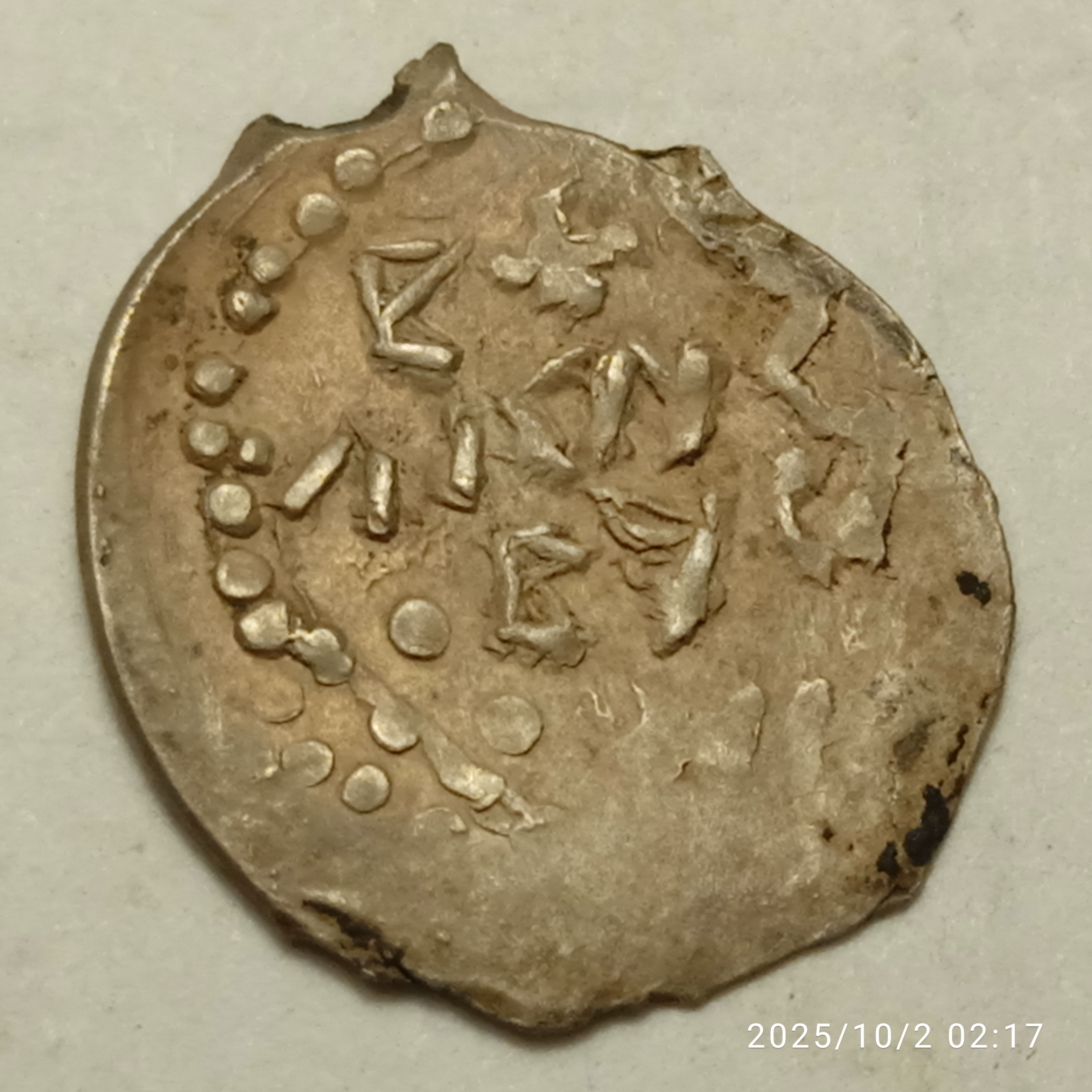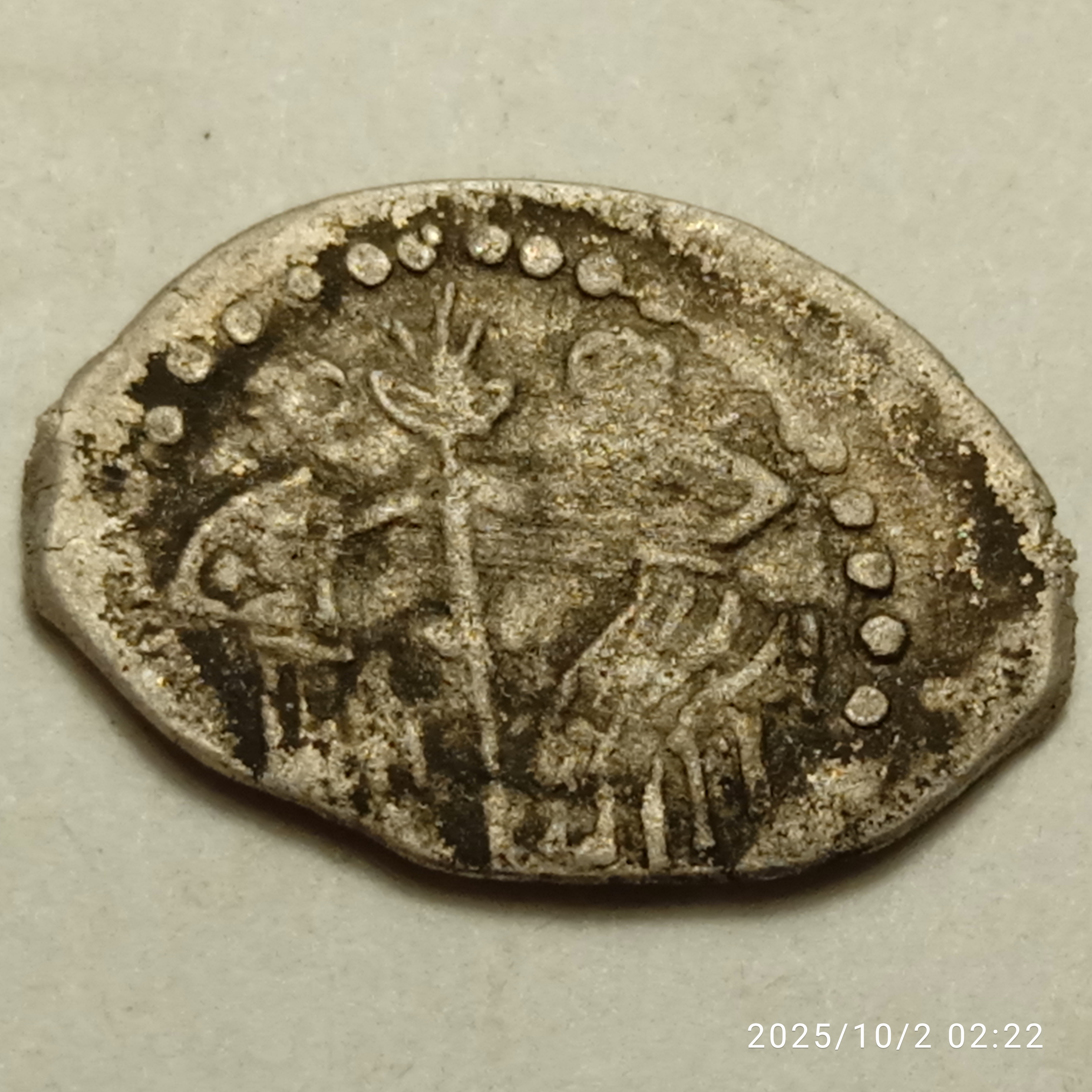 QUOTE(poteriashka @ Oct 2 2025, 08:30) Просьба определить и оценить, вес 0.57г Региональный (возможно, муромский) чекан Василия Дмитриевича Московского, первая половина 1410-х гг. Не особо редкий тип, тысяч 5-7 стоит. |