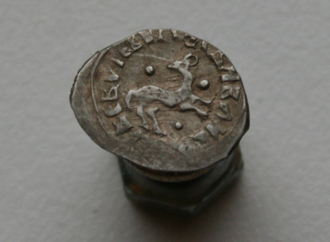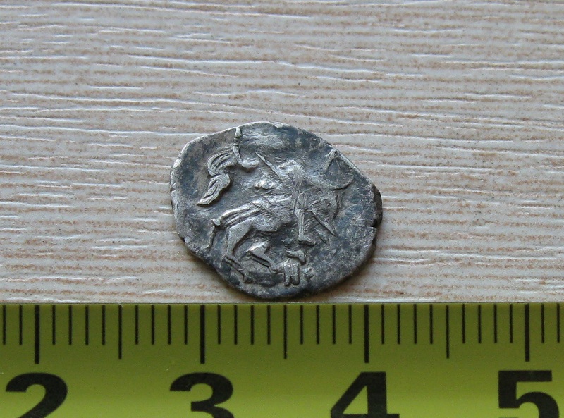 Снова здравствуйте.. Вес этой монеты 0,85 грамм, размер 2 х 1,5 см - она ОГРОМНА. Но, не смотря на такие размеры, определить самостоятельно я ее не смог. Буду очень признателен за помощь в атрибуции. Спасибо!