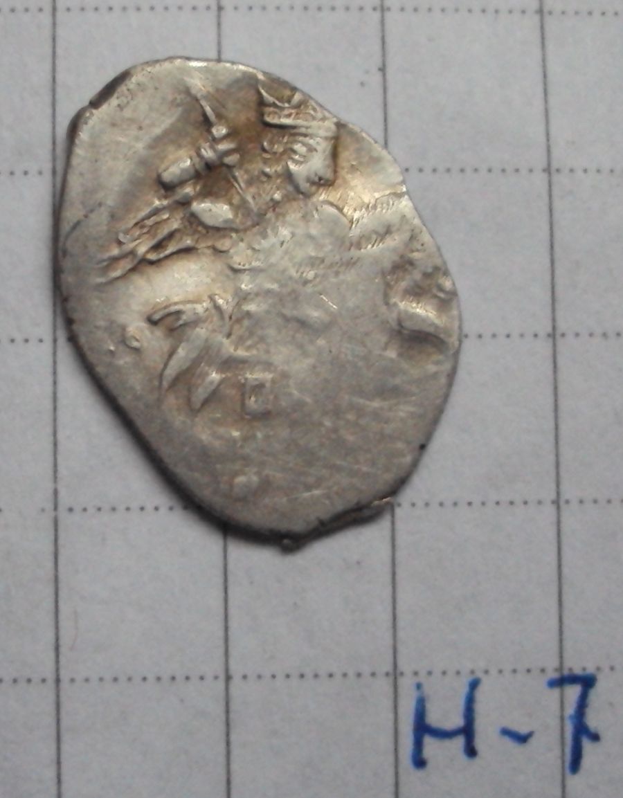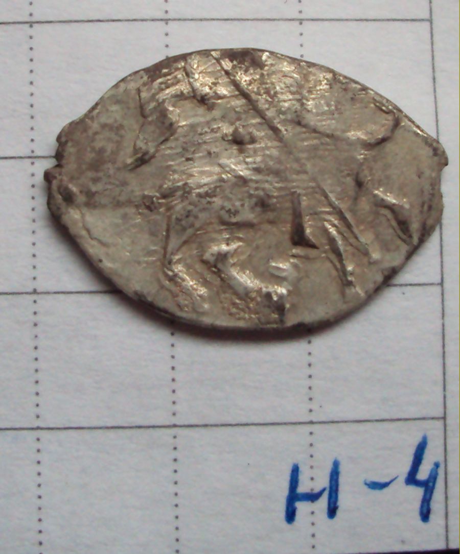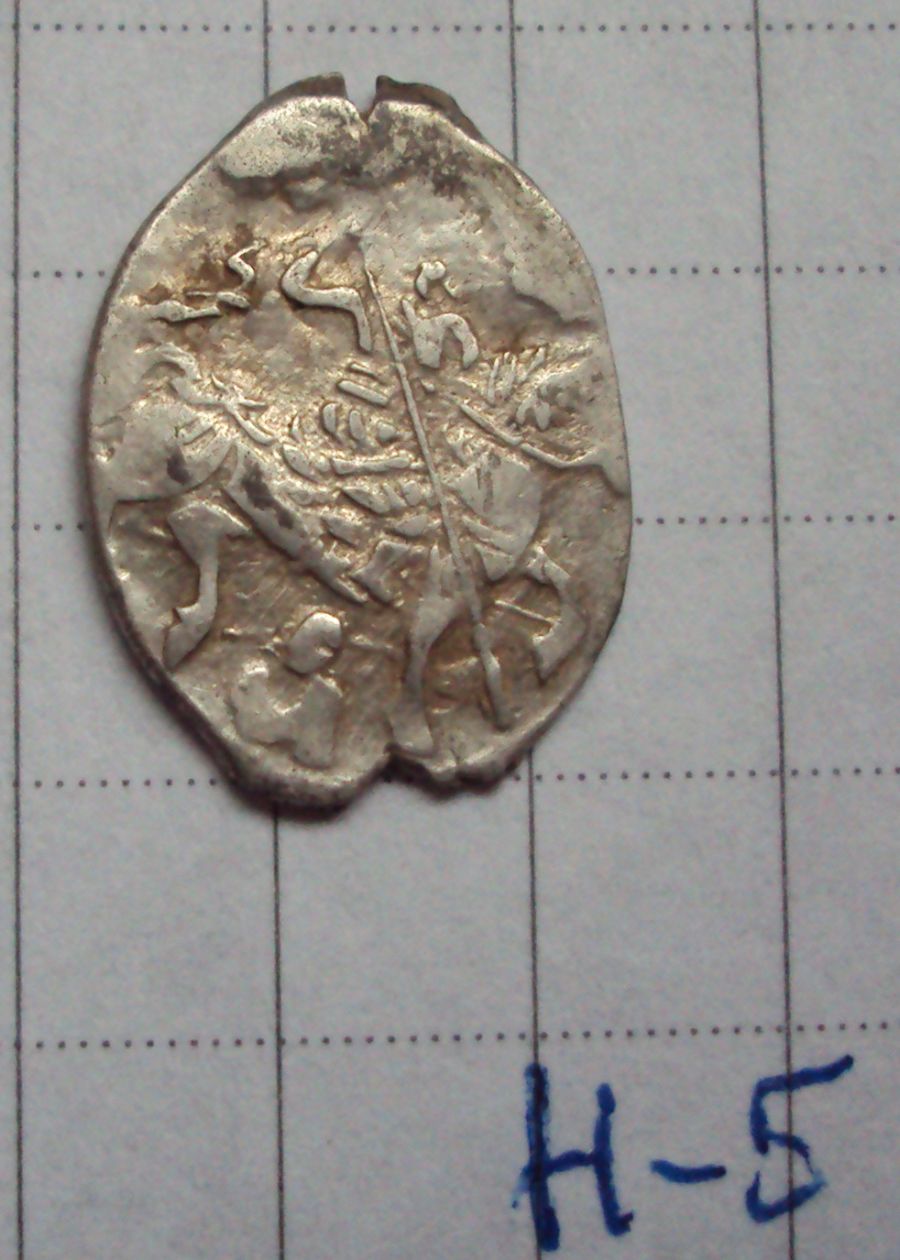 Н-2. Иван Грозный, Псковский чекан 1535 -- 1538 гг. Под конем буква А. Н-1. Иван Грозный, Новгородский чекан 1560 - х гг. Под конем буквы К/ МНХ |