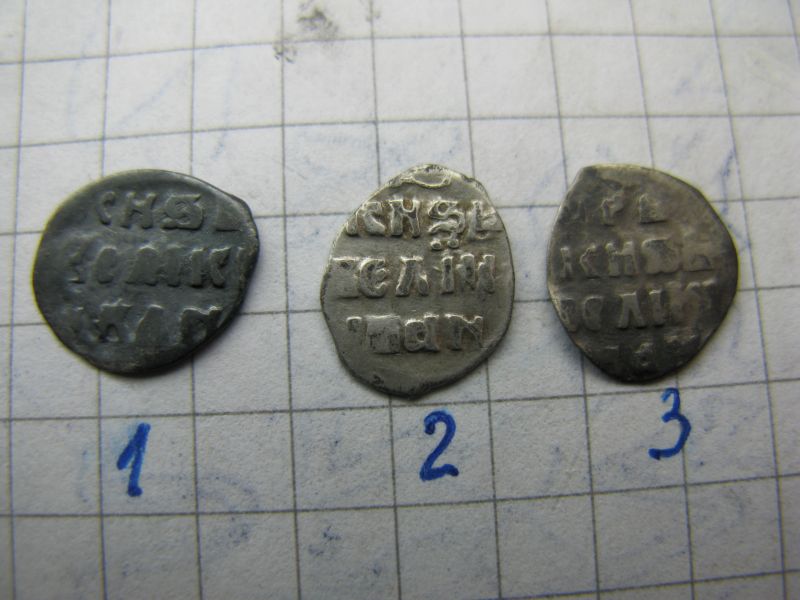 Прошу помощи в определении и оценке 3-х монеток. Найдены в Тверской области. Взвесить нечем, но монета №1 явно толще остальных. Полагаю, что это Тверские пуло, но сам в этой теме не силен. Заранее благодарен всем, кто может просветить Вложенные эскизы изображений -------------------- Завтра снова в поле....