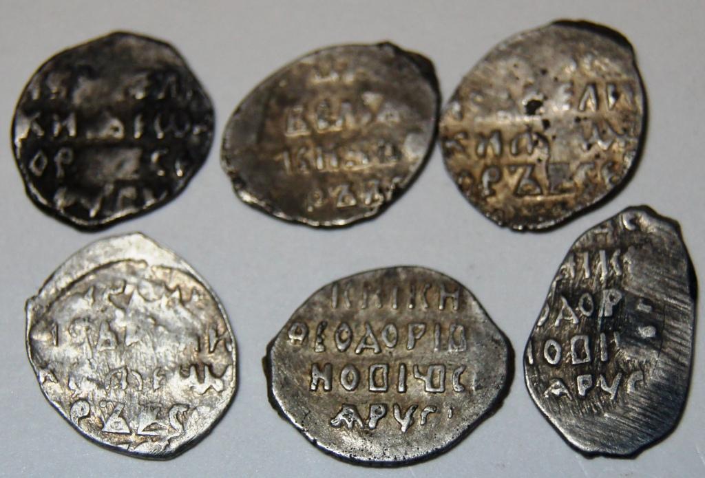 QUOTE(MALAXAI @ Dec 15 2011, 16:38) Спасибо большое. Первый раз решил сам попробовать разобраться, становится интересно. Если Вас не затруднит, еще раз посмотреть, не ошибся-ли я. Верхний ряд : 1 и 2. Московские копейки Борис Фёдорович по КГ №173 3. Псковская копейка Борис Фёдорович по КГ №193 Нижний ряд: 1. Новгородская копейка Борис Фёдорович по КГ №209 2. Московская копейка Борис Фёдорович по КГ №160 степень редкости IV 3. Новгородская копейка Борис Фёдорович по КГ №225 степень редкости I последняя больше на 223 похожа -------------------- ЯR