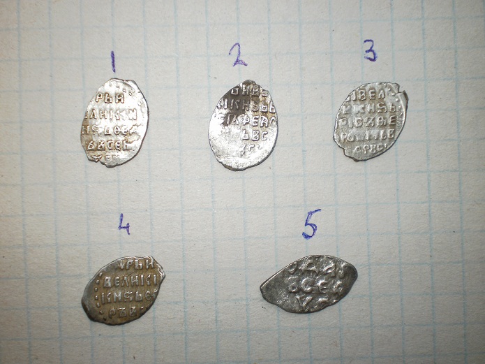 QUOTE(СТАКАН @ Jan 6 2012, 20:34) сегодня попались вот такие чешуйки. прошу помощи в их определении и стоят ли чего. заранее спасибо! Вас. Ив. Шуйский,Мих. Фед. Романов,сын его- Алекс. Мих.,интерес представляет только первая чешуйка,по цене не скажу,посмотрите проходы на аук.. Удачи! -------------------- Сокровище-то,что ищут долго и далеко,а оно валяется под ногами. Так оно прячется.
