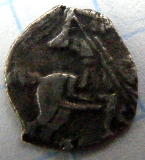 QUOTE(Владимир OZ @ Jan 7 2012, 14:04) Остатки "удела", вообще не могу понять. Даже где верх где низ. Вес 0,46г. На фото расположение правильное, человек с мечом и секирой влево. Суздальско-Нижегородское княжество, Даниил или подражание ему - на этом варианте от круговой надписи в лучшем случае только следы остаются. -------------------- новый каталог по царской чешуе