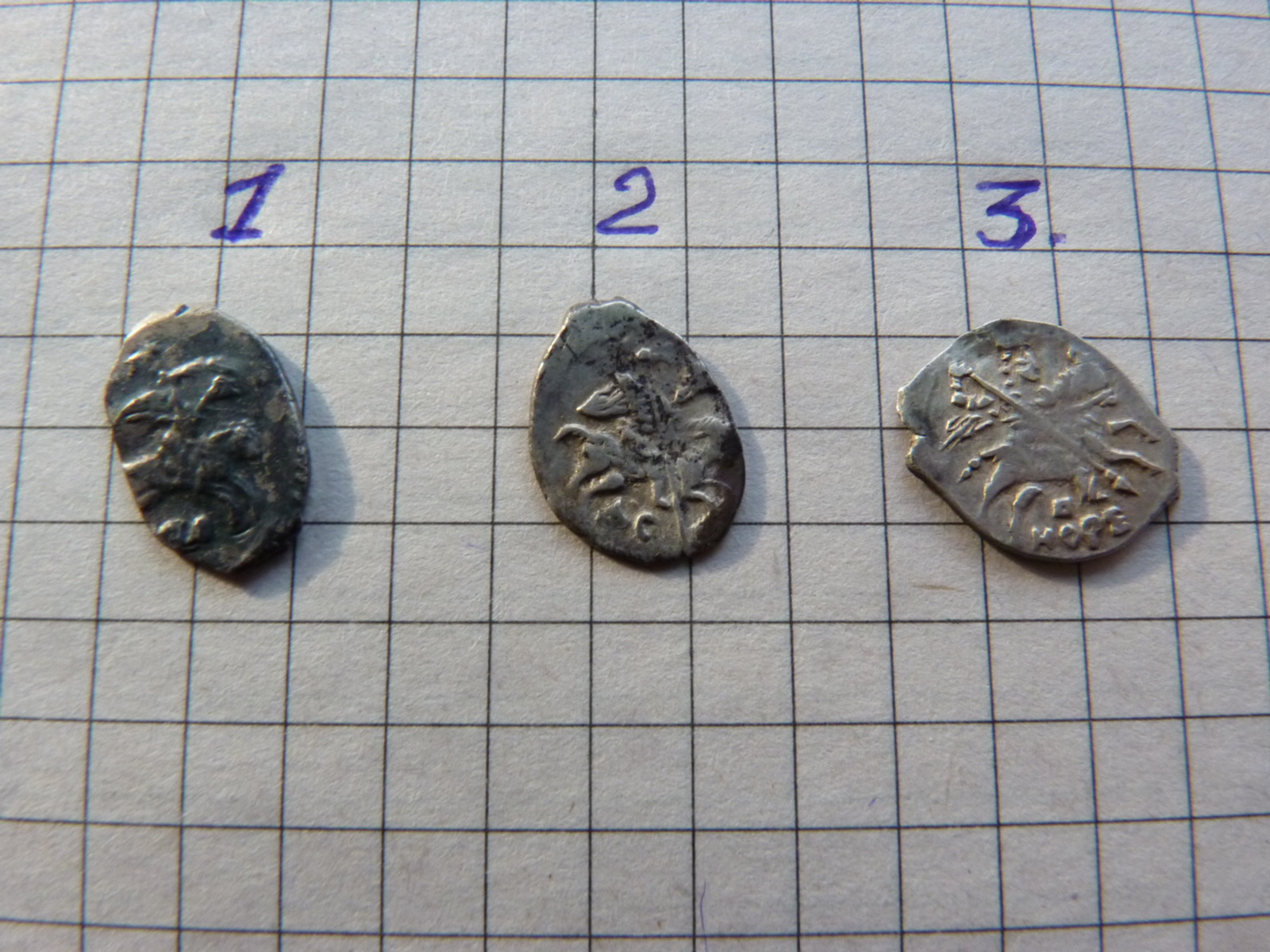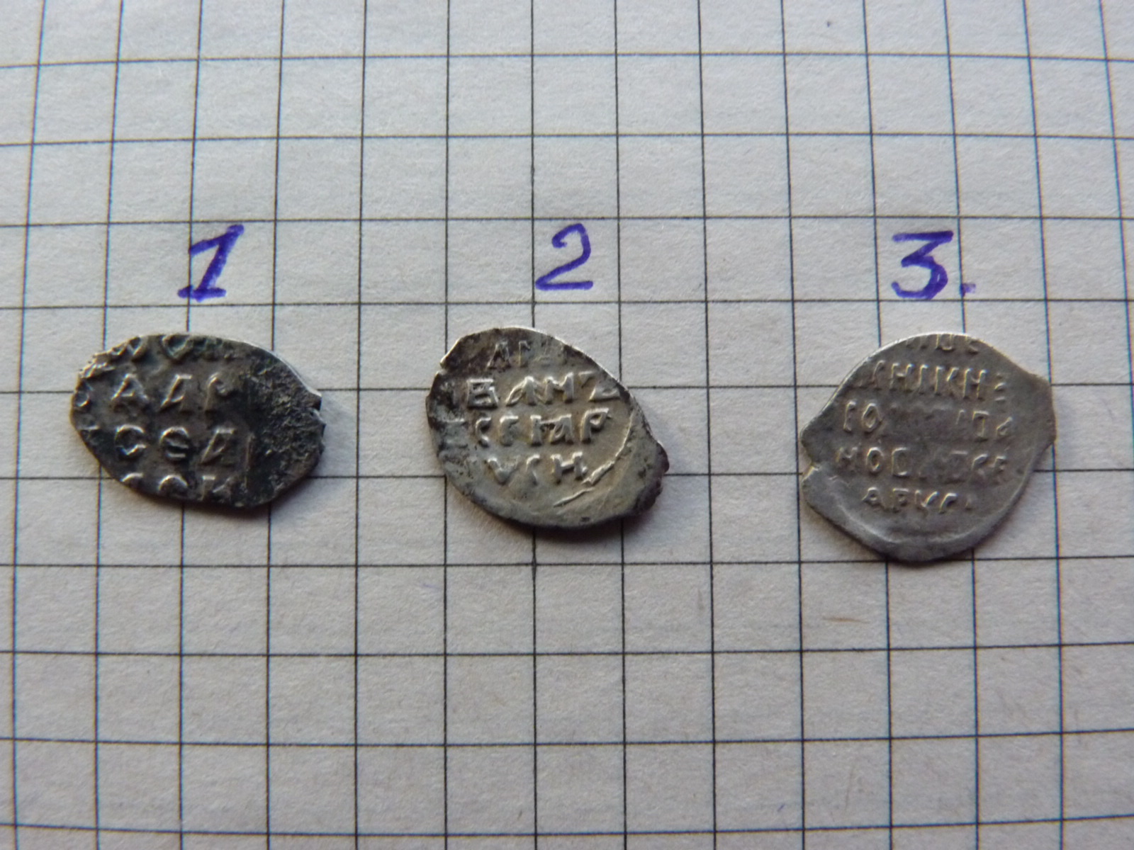 Первая и третья -простые денги Ивана3 -Александро и Аристотель стоят мало.В середине-подражание денге 1420-х годов.Надпись сильно искажена.Эта интересует за вменяемую цену.Сорри,на средней ,действительно,Иван.Значит,интересует за большие деньги.