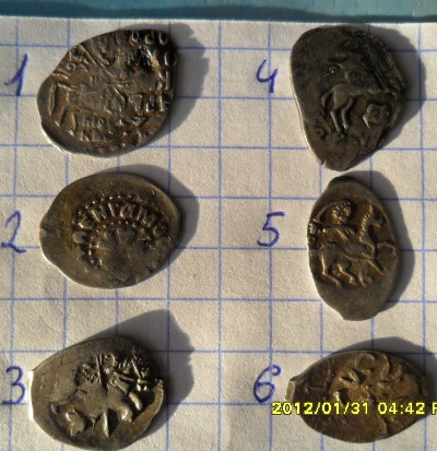 QUOTE(tork @ Feb 2 2012, 00:10) Друзья, помогите опредлить по номерам, по редкости, по стоимости если можно, с ув. Ваш верный форумчанин Торк. Копейки Грозн.-1-кг79, 3, 8 -кг73 , 9-полушка кг98, 10-денга кг33 Копейки Мих.Фед -2 кг367, 6-кг328, 7-кг330, Копейка 4- Петр кг-? , 5-денга Василий III. Все простое. |