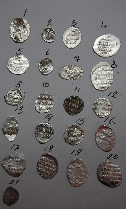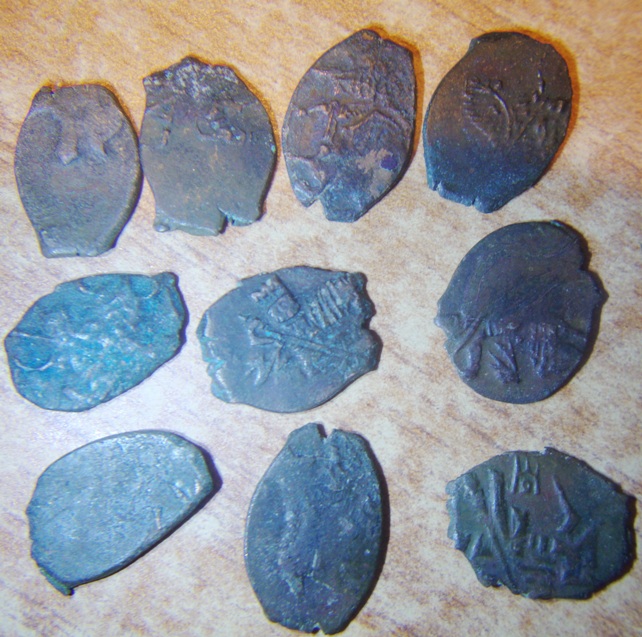 QUOTE(gol-egor @ Mar 2 2012, 15:53) Подскажите, чьи монетки? Были в кладе Все Петровские: №3 совместное правление, остальные - единоличное. №1 фальшак для обращения. -------------------- новый каталог по царской чешуе