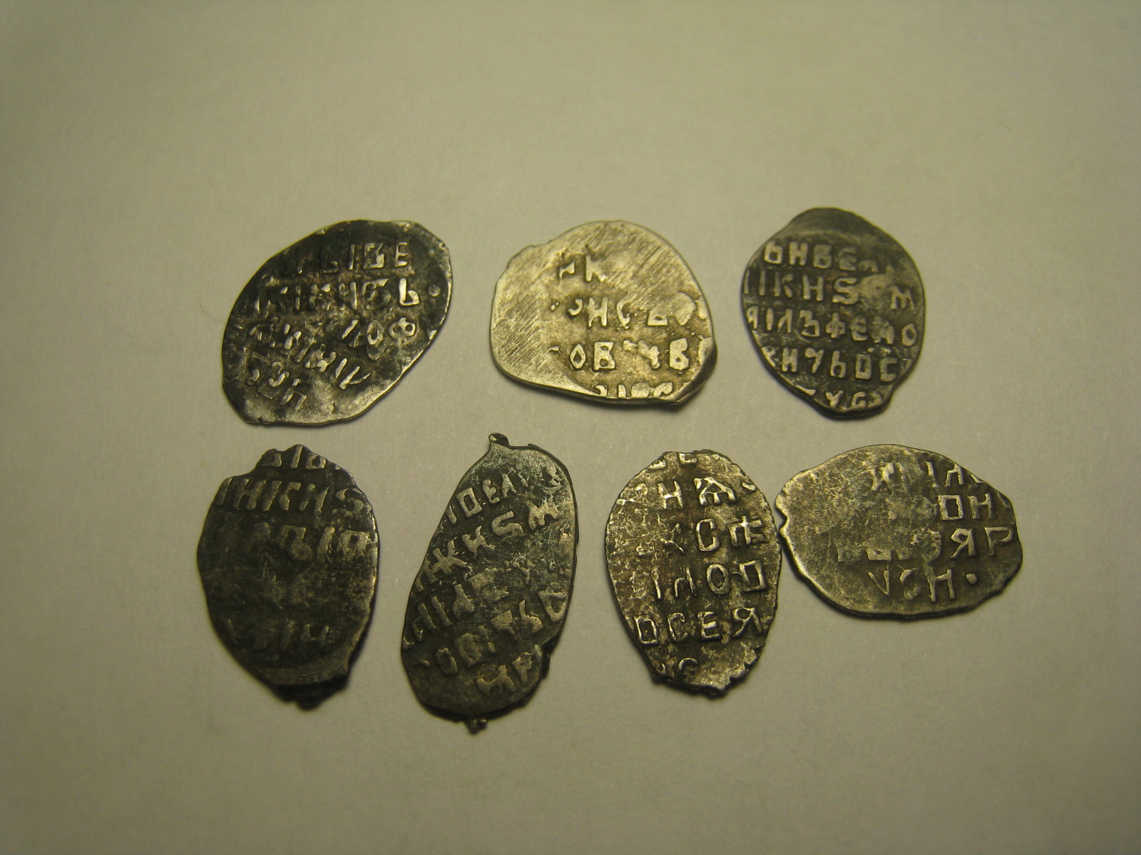 QUOTE(канарейко @ Mar 5 2012, 08:27) Нужна все таки 2я сторона монет(уж если про номера по КГ говорить). А так, на 1й взгляд : 1)Ополчение 2) псковский Годунов 3)Михаил 4) Ополчение 5,6,7) Михаил. вторая сторона на предыдущей строке на стр 724, друзья посмотрите пожалуйсто. Спасибо заранние С ув Торк |