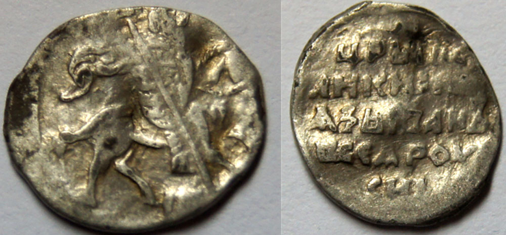 QUOTE(ТРЭЭК @ Apr 1 2012, 17:43) Псковская копейка Ивана Грозного, КГ 95(простая), 50-100 руб. -------------------- Чешуя лотами: http://www.reviewdetector.ru/index.php?showtopic=260805&hl=