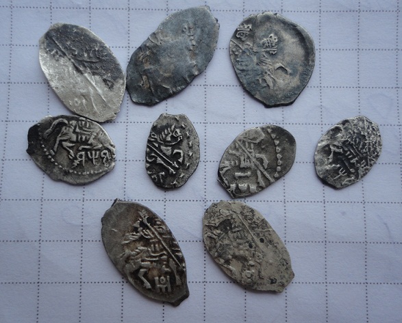 QUOTE(airon @ Apr 19 2012, 01:26) Всем здравствуйте.Прошу помочь определить период выпуска и почему такой страшный конь на обЕих. Своими силами не получилось.Спасибо всем кто ответит. Грозный - новгородская и псковская копейки. За качеством выпускаемых монет тогда совершенно не следили, потому такие страховидлы в чешуе сплошь и рядом. К тому же и время их не пощадило. QUOTE(-бригадир- @ Apr 19 2012, 09:22) Коллеги помогите определить Грозный, не самый частый. -------------------- новый каталог по царской чешуе