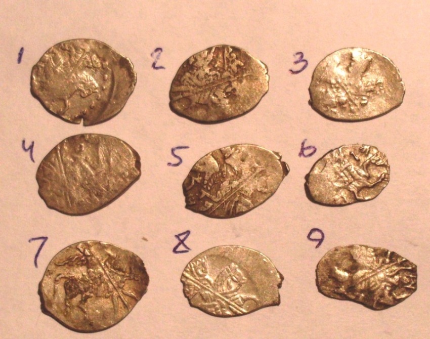1.Моск.коп.Мих.Фед.кг361 ,5 ст.ред. 4.Моск.коп.Бориса Годунова кг.172,6 ст.ред. 7.Моск.коп.Мих.Фед. кг.256 ,6 ст.ред. 2.Моск.коп.Владислава Жигимонтовича кг.296, 9 ст.ред. 5.Второе земское ополчение с именем Федора,кг318, 8 ст.ред. 8.Ярославская копейка Мих.Фед.,кг791, 9 ст.ред. 3.Новгородская копейка Мих.Фед. кг.649, 1 ст.ред. 6.Петр Алексеевич , лицевик №28, оборотка №9 9.Совместное правление Ивана и Петра Алексеевича , кг 1552, 7 ст.ред. Сообщение отредактировано Витабор: Apr 21 2012, 22:07 Вложенные эскизы изображений |