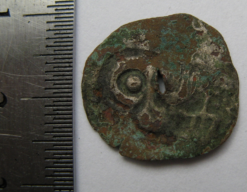 Попалась вот такая чешуйка, медная с посеребрением, оборотка пустая, похоже на рязанку, подскажите подделка или так и должно быть?
