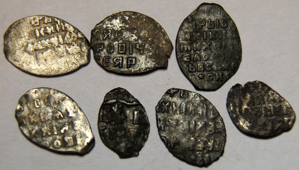 QUOTE(Urchik @ May 16 2012, 22:25) Здравствуйте Уважаемые профессионалы!!! Помогите пожалуйста с определением и оценкой чешуи!!! С Уважением!!! Верхние три - Грозный, Москва, сабельная денга в весе копейки и две денги. Нижние - псковский и новгородский Федор Иванович и московская портретная копейка Бориса Годунова. |