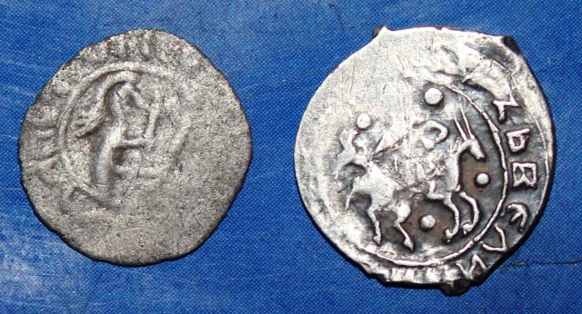 QUOTE(Гогер @ May 26 2012, 22:31) Редкая Дмитровская полуденга, князь Петр Дмитриевич, и Василий Дмитриевич Московский верхом на антилопе. Первая, жаль, потерта, но всё равно 5-6 тыс. руб. должна стоить, а то и поболе. ВД - 1,5-2 тысячи. Огромное спасибо за определения. |