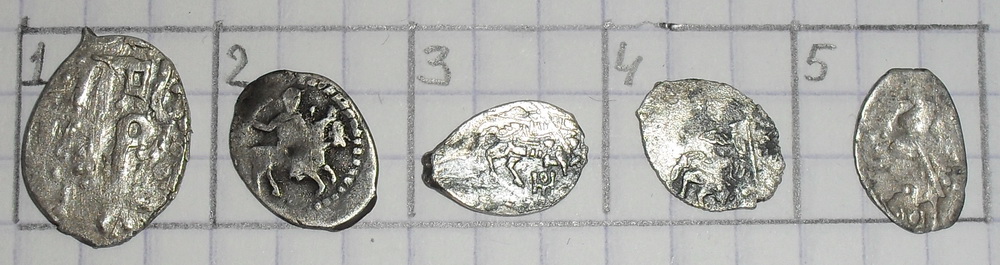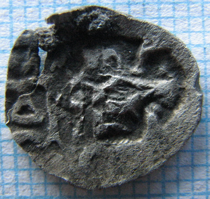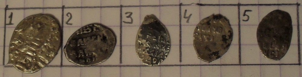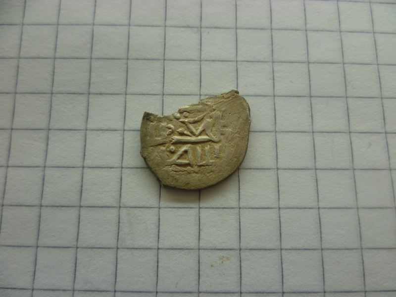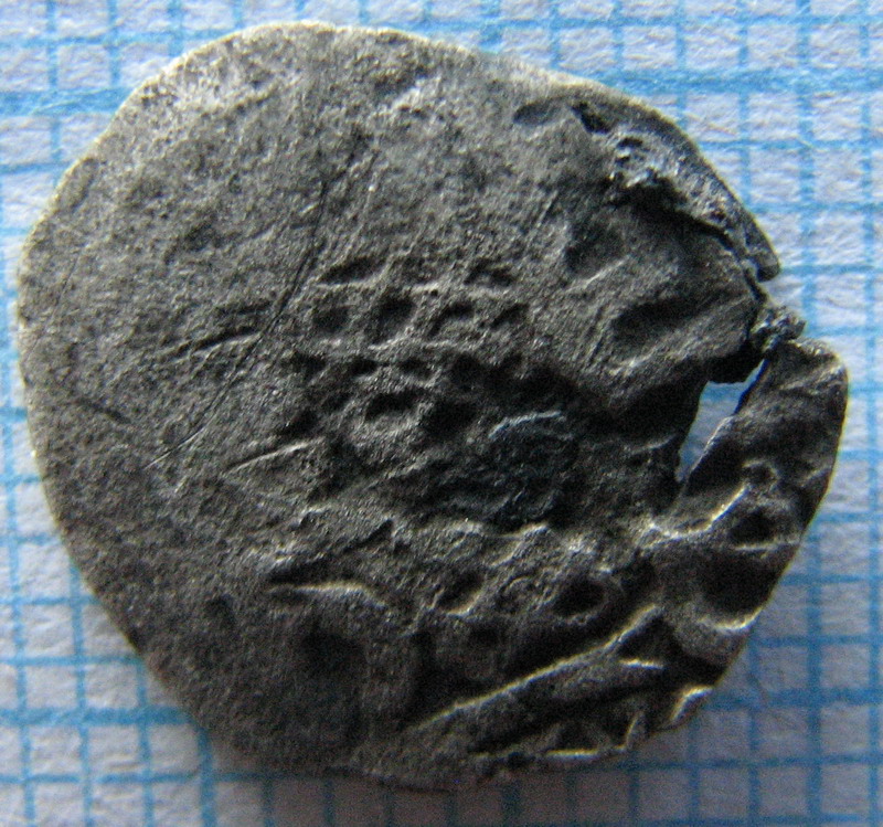 краска стирается спичкой.если присмотрется то видно краска отслаивается. найдена на селище 12 -15 в в брянской области из сопутки копейка и деньга грозного