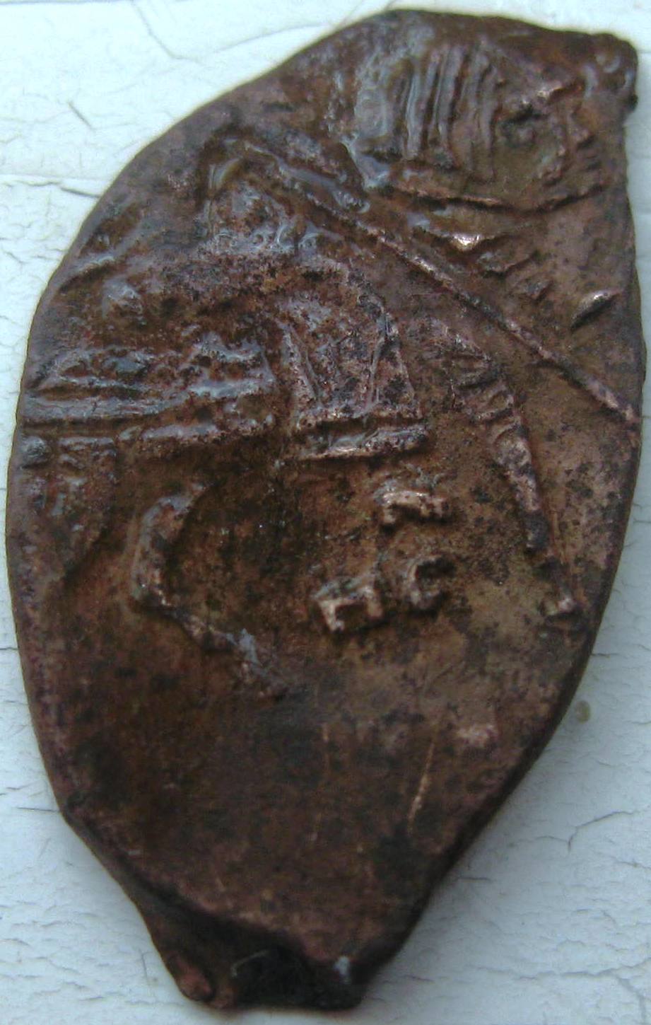 Уважаемые знатоки темы-подскажите что это за монетка.Да и монетка ли вообще.Сам впервые такую вижу.Приятель вот нашел и просил узнать чтоже всетаки это такое. Вложенные эскизы изображений -------------------- Оставь надежду всяк сюда входящий.