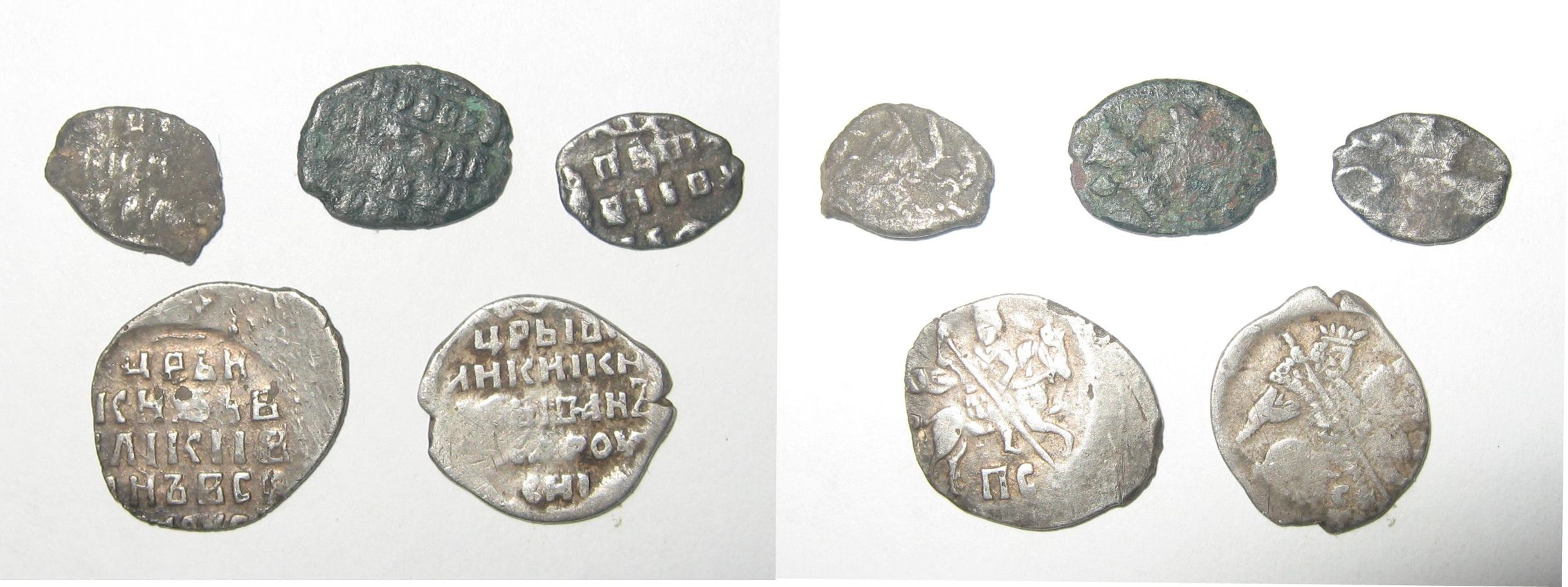 QUOTE(Контов @ Jul 25 2012, 14:27) Прошу определить, вторя медная. 1,3 Пётр 2 Алексей 4,5 Грозный всё простое. -------------------- новый каталог по царской чешуе