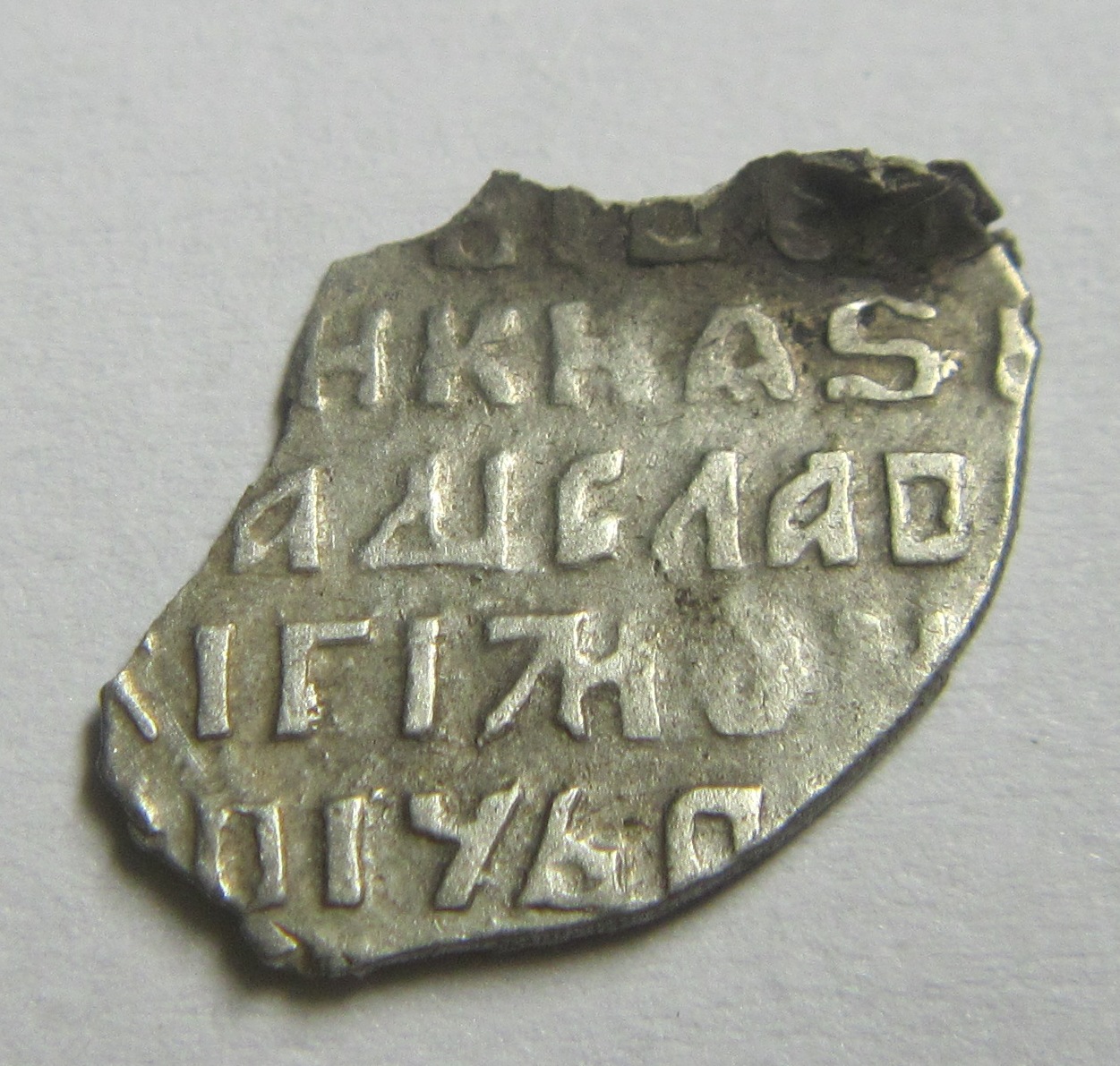 Только с полей,попалась вот такая (к сожалению,сломалась). Найдена под г.Дмитровым Подскажите пожалуйста что это? Легенда вроде Царь всея Руси ,что написано сбоку всадника? Всем ответившим-Большое Спасибо! -------------------- Не говорите мне что делать и я не стану вам указывать направление,куда вам идти!