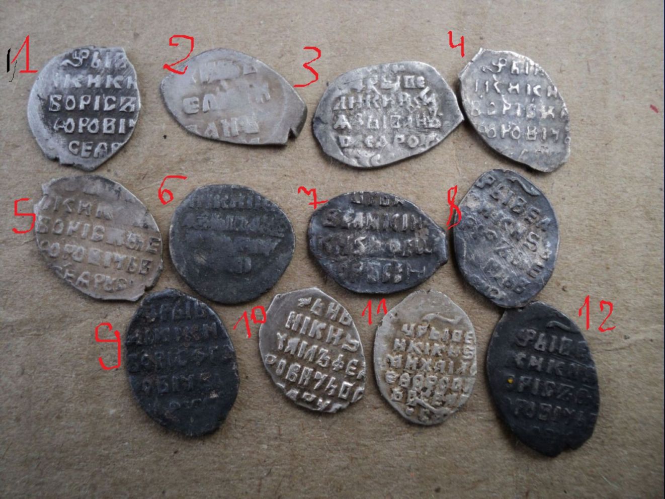 QUOTE(askin @ Aug 2 2012, 23:20) Прошу помощи в определение и оценки данных чешуек.. С уважением.. 1,4,5,8,9,12 Годунов. 2,3,6 Грозный. 7 Федор Иванович. 10,11 Михаил федорович. Все простое по50-100р. кроме №9 по КГ204 редк.2 |