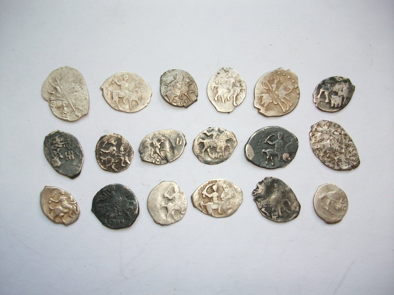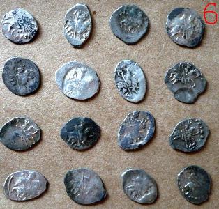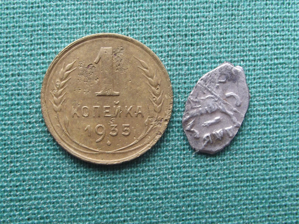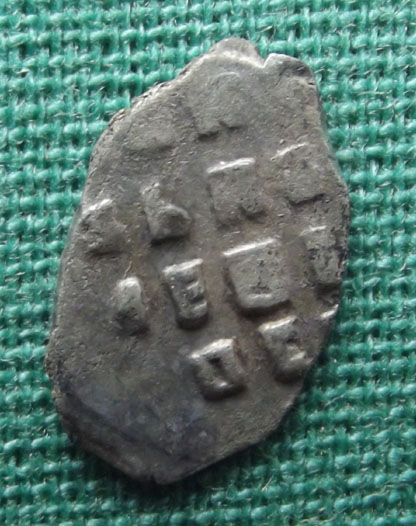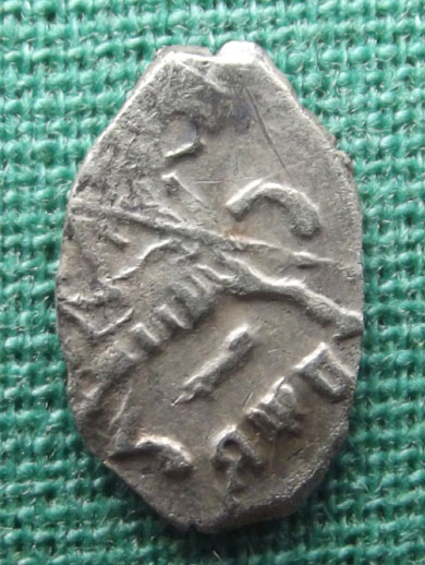 QUOTE(К.Маркс @ Aug 16 2012, 09:45) Доброго времени суток!Попалась такая чешуйка.Поразил маленький размер. Нужна помощь в атрибуции. Заранее благодарен. Это Пётр 1, размер для него частый, так называемая вошь. Правда мне не попадались с буквенным обозначением года под конём. |