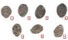 Прошу уточнить и оценить (неправельные) монеты-чешую. Спасибо. Вес сверху вниз- 0,29-030-денга, штемпель копейки ? 0,25-денга 0,24-денга 0,25 - денга 1700,разворот на 90 гр.-? копейка Петра-0,40. копейка Михаила Федоровича-0,40 ,двойной удар. Верно ли я определил,и по цене,есть ли что интересное ? Вложенные эскизы изображений |