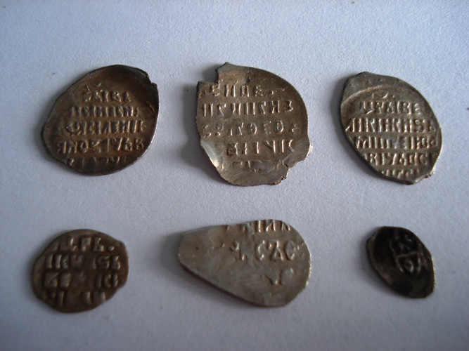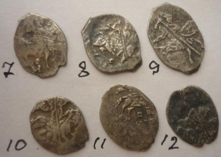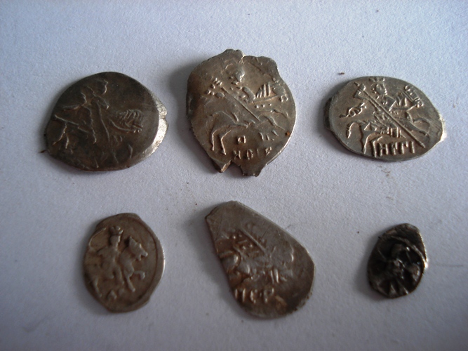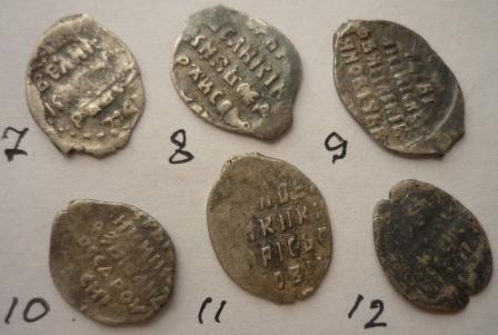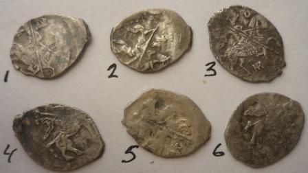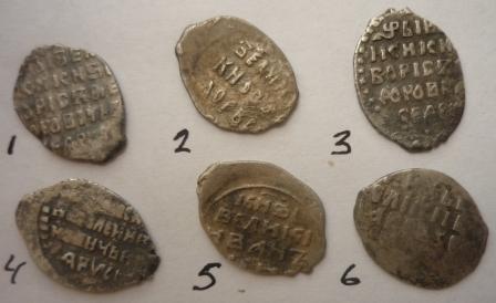 QUOTE(Филька @ Aug 24 2012, 18:38) Прошу помощи в определении чешуек и их стоимости. Заранее благодарен ответившим. 1 КГ№252 Шуйский простая; 2 КГ№209 Годунов простая; 3 Г№247 Лжедмитрий(прекрасный сохран!); 4 КГ№61 денежка Грозного простая; 5 КГ№193 Годунов простая; 6 полушка Фёдора КГ№140 не плохая. |