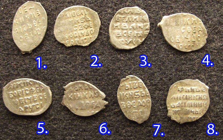 QUOTE(К.Маркс @ Sep 26 2012, 23:18) Доброго времени суток! Просьба атрибутировать чешуйки. Если не затруднит,по степени редкости. Заранее благодарен. 1,2,4-7 Борис 3 Грозный 8 Шуйский всё очень простое. -------------------- новый каталог по царской чешуе
