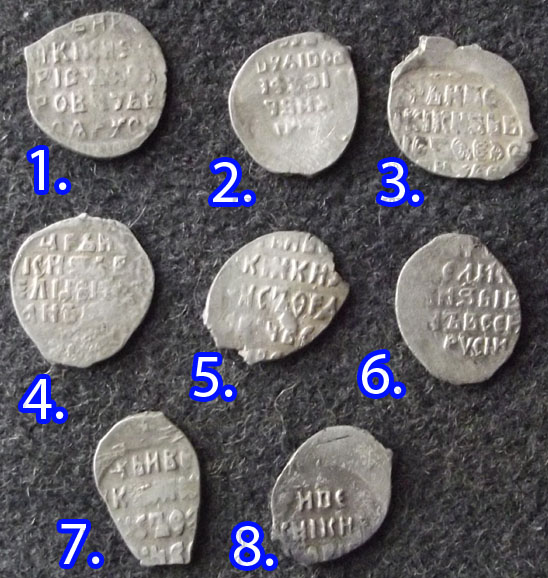 QUOTE(канарейко @ Oct 4 2012, 10:42) №№ 1, 2, 3, 5, 7 - Борис Годунов. №№ 4, 6 - Грозный, №8 - Фёдор Иванович По КГ - 1) 202 (8ст) 2)232 3)203 4)77 5)193 6)87 7)193 8)116 редкостей нет. №1 - чуть пореже. [QUOTE] Премного благодарен! -------------------- ... к людям надо помягше, а на вопросы смотреть ширше...