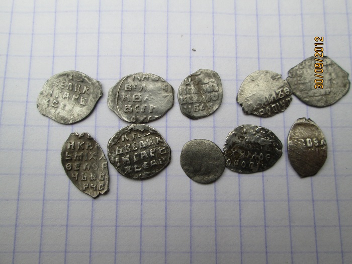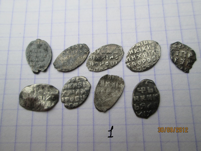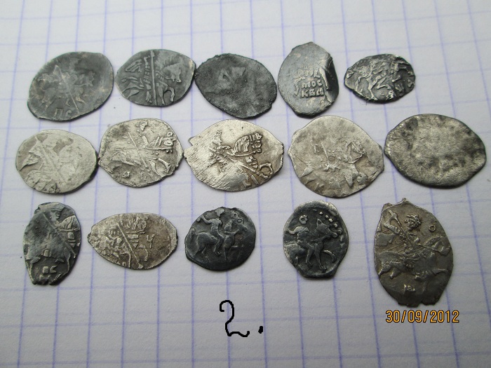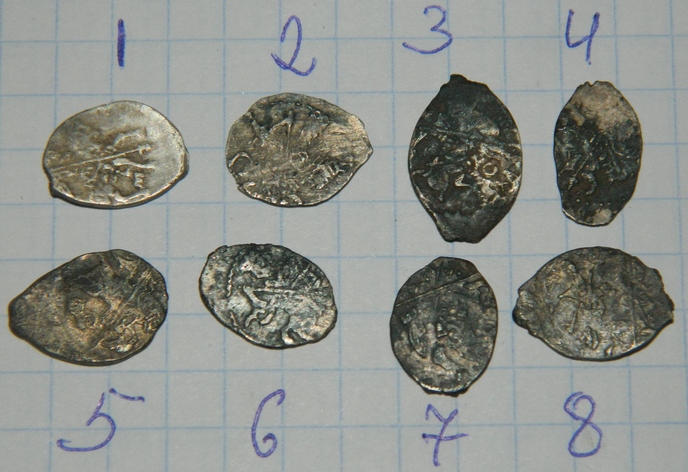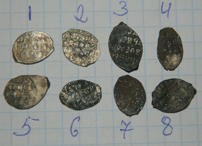 QUOTE(глазастик @ Oct 9 2012, 22:33) добрый вечер. помогите определить и оценить чешую. 1, 7 - Михаил Федорович 2 - Иоанн Алексеевич, КГ-1508 3, 8 - московский Годунов 4, 6 - Петр времени совместного правления 5 - Грозный с буквами ФС -------------------- Тише едешь - ярче спишь.