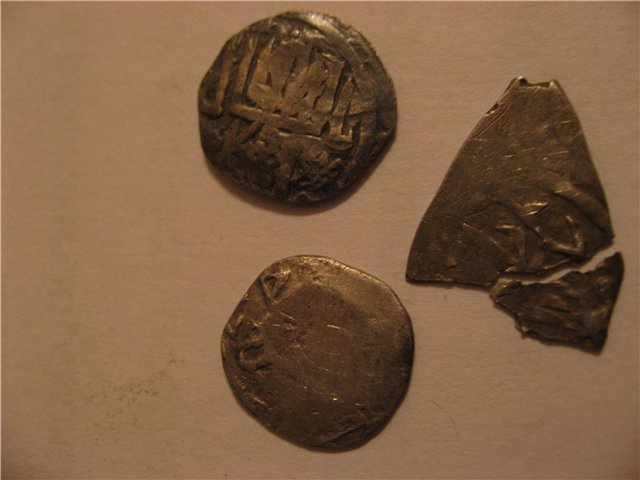 QUOTE(ромка @ Oct 20 2012, 22:57) Добрый вечер подскажите пж по надчеканам и по уделкам. И по стоимости монет. Благодарю. Та, что одна - коломенская птичка ВД. Где три - пара надчеканов на обрезанных дирхемах (нижний - т.н. узел счастья - очень модный) и обломок нижегородской денги. |