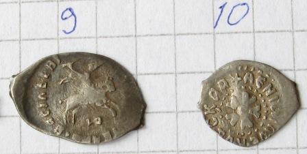 QUOTE(sagara @ Nov 12 2012, 15:44) Здравствуйте! Просьба определить и оценить монетки. №9 0,76гр. №10 0,4гр. Заранее благодарен. Новгородский Иван 3 и московский поздний Василий Темный. |