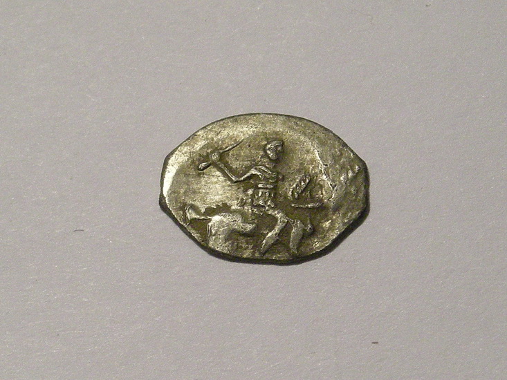 Доброго времени суток, сегодня перебирая чешую, попалась довольно интересна на мой взгляд чешуйка, сама медная покрыта серебром, я понимаю что фальшак вероятнее всего того времени но может и ошибаюсь, подскажите атрибуцию и дайте пожалуйста оценку данной чешуйке, сам так и ме смог разобрать чья и что изображено. Вес 0,26гр